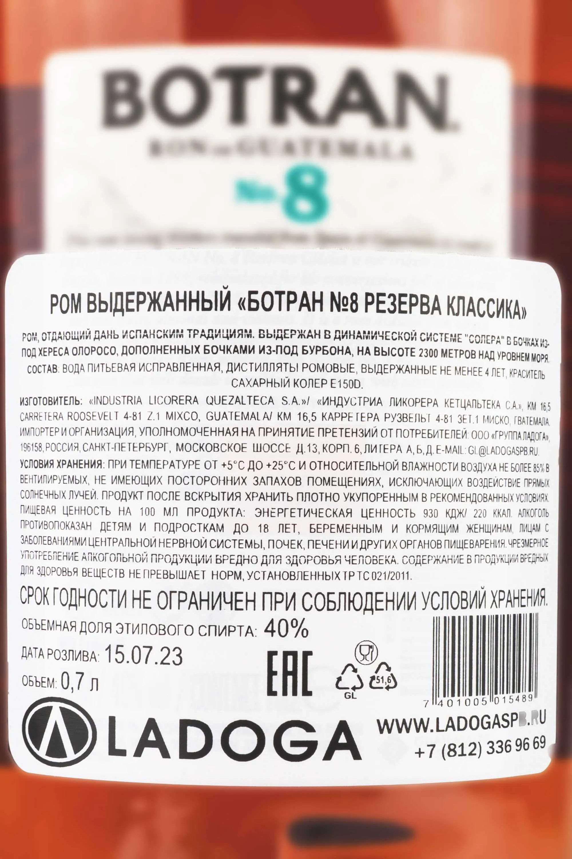 Botran №8 Reserva Clasica 0.7 л купить - Ром Ботран №8 Резерва Классика цена в магазине г. Москва, ул. Профсоюзная, д. 16/10 10:00-22:00 Ежедневно +7 (495) 920-20-02 info@cru.ru