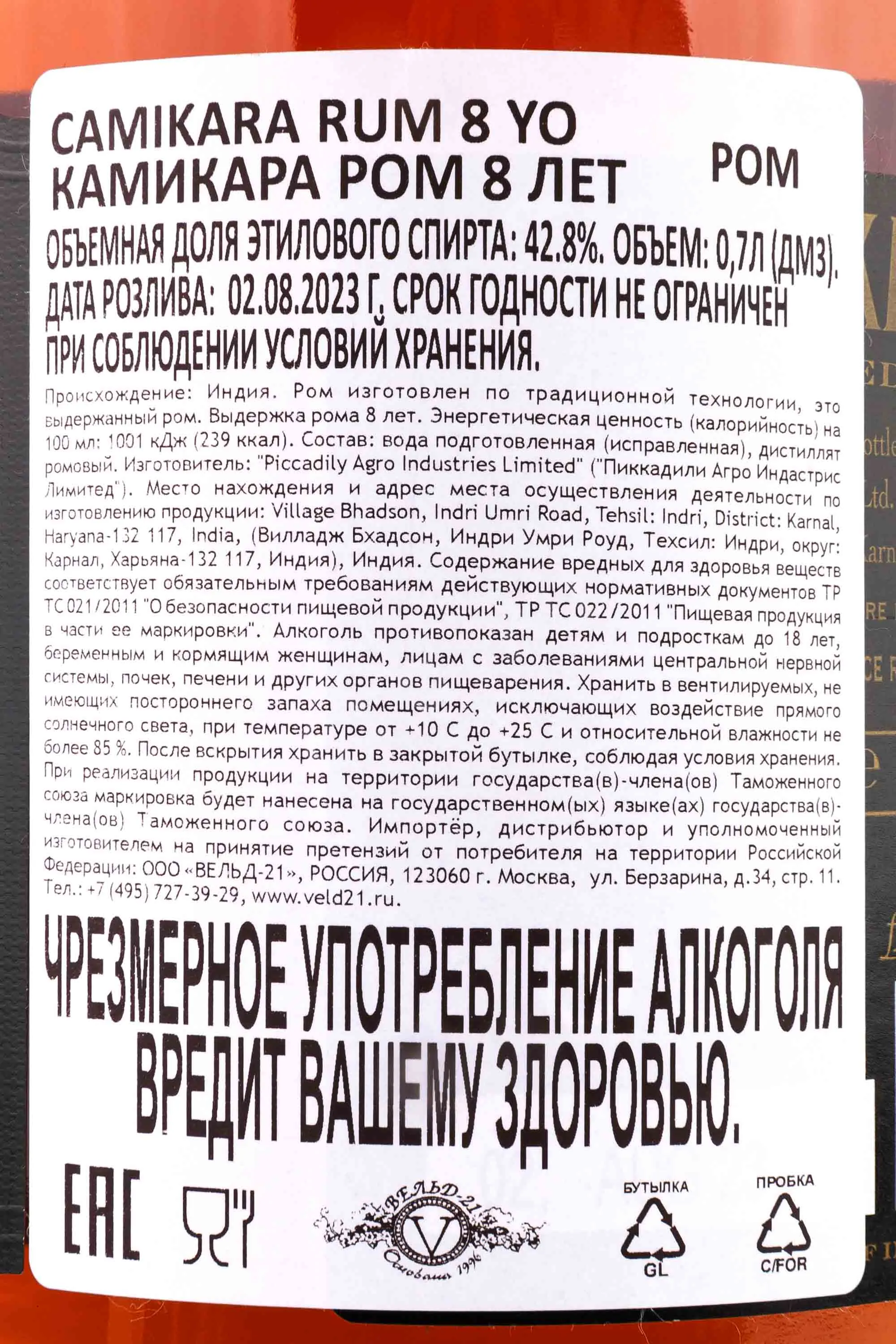 Camikara Rum 8 YO gift box 0.7 л купить - Ром Камикара Ром 8 лет в подарочной упаковке (мешок) цена в магазинег. Москва, ул. Профсоюзная, д. 16/1010:00-22:00 Ежедневно+7 (495) 920-20-02info@cru.ru