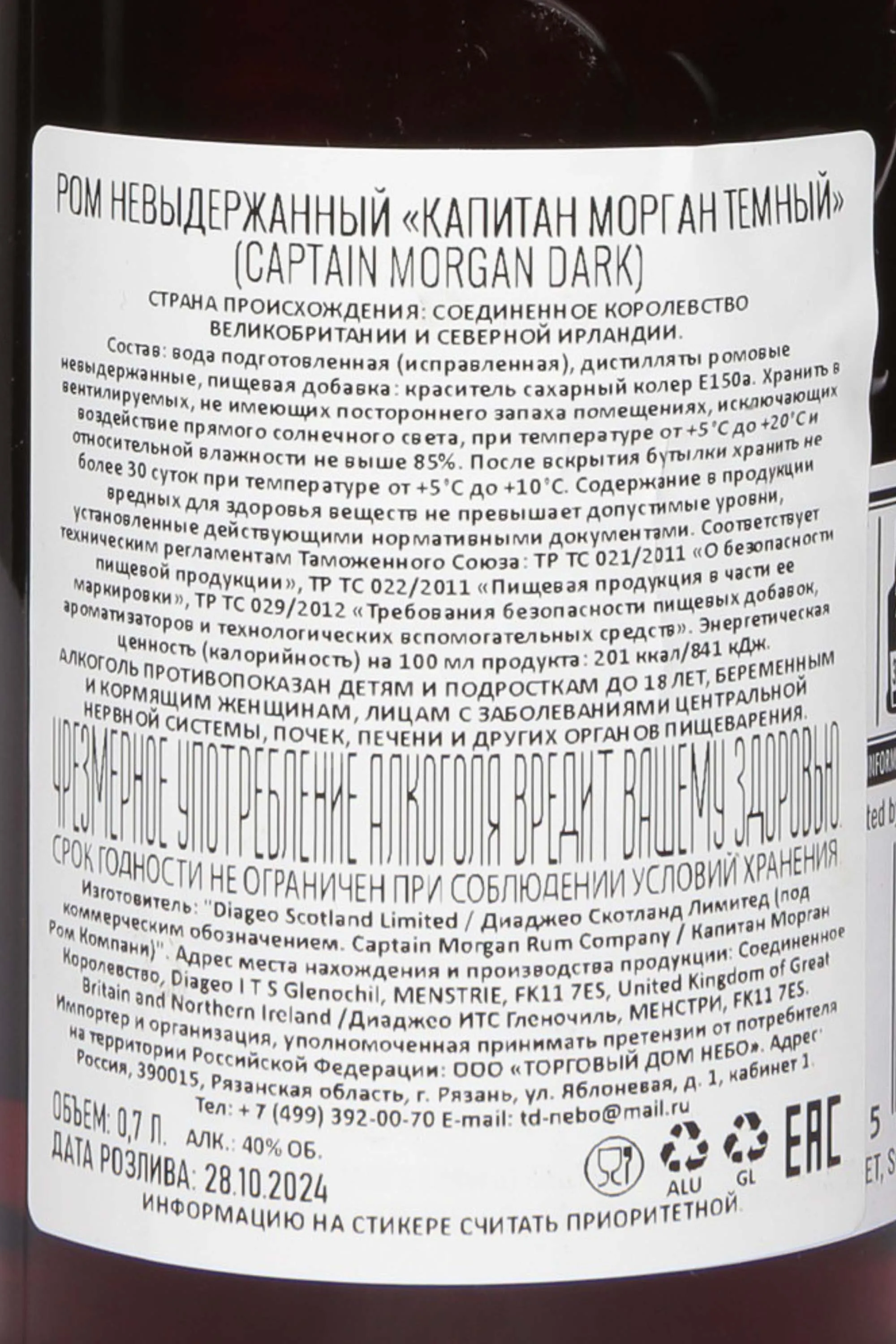 Ром Captain Morgan Dark 0,7 л — это крепкий напиток в классическом карибском стиле. Ромовые спирты были получены путем традиционной дистилляции, затем выдерживались в обожженных дубовых бочках. Такая технология обеспечила напитку насыщенный вкус и глубокий цвет. Он получил известность благодаря балансу между сладостью и пряностью, что выделяет его среди других темных сортов. Качество этого рома отмечают профессиональные дегустаторы, а бренд Captain Morgan стабильно включается в рейтинги самых популярных ромовых марок в мире.