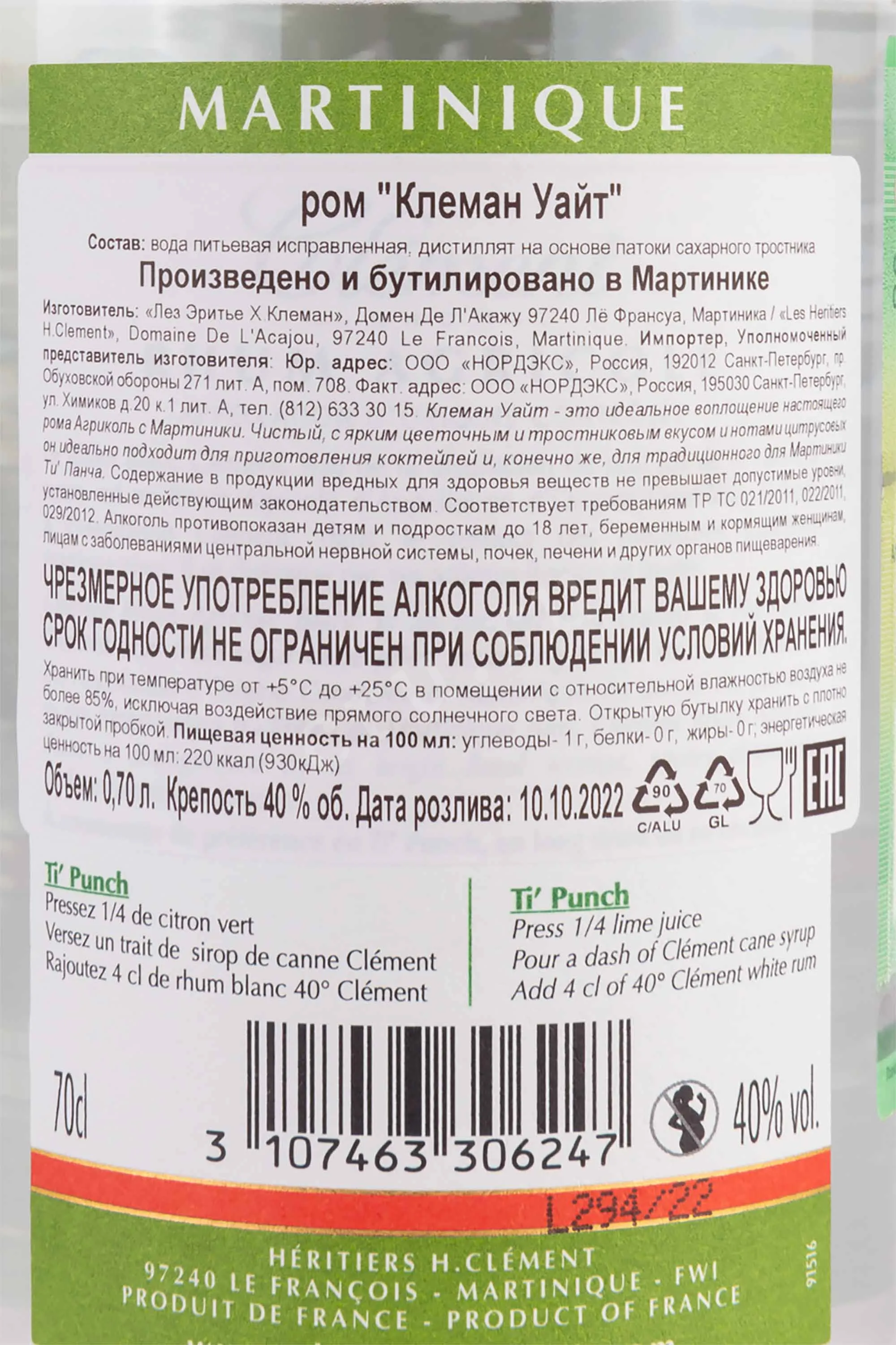Clement White Martinique 0.7 л купить - Ром Клеман Уайт Мартиника цена в магазине г. Москва, ул. Профсоюзная, д. 16/10 10:00-22:00 Ежедневно +7 (495) 920-20-02 info@cru.ru