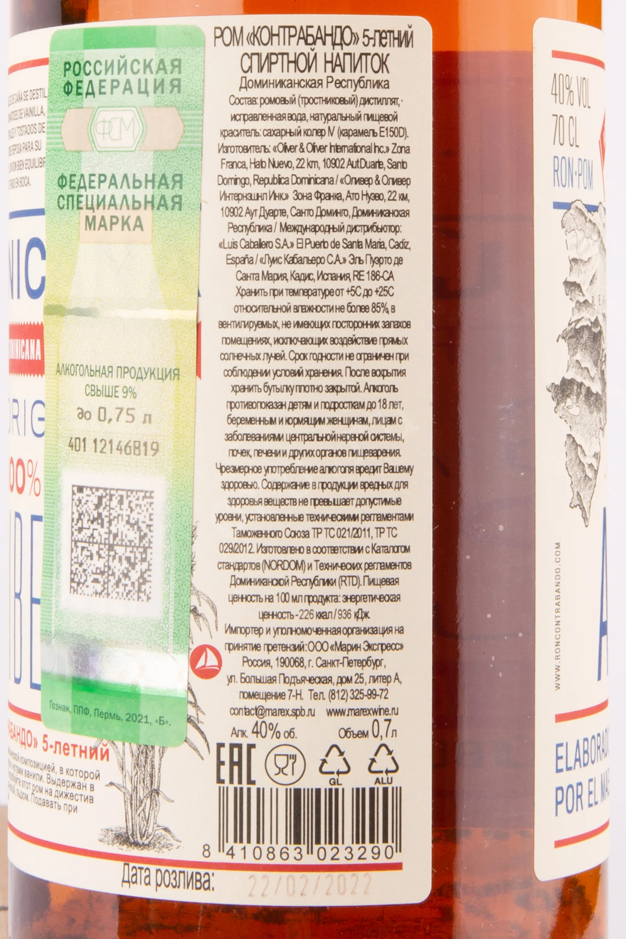 Ром Contrabando Anejo 5 years gift box 0.7 л