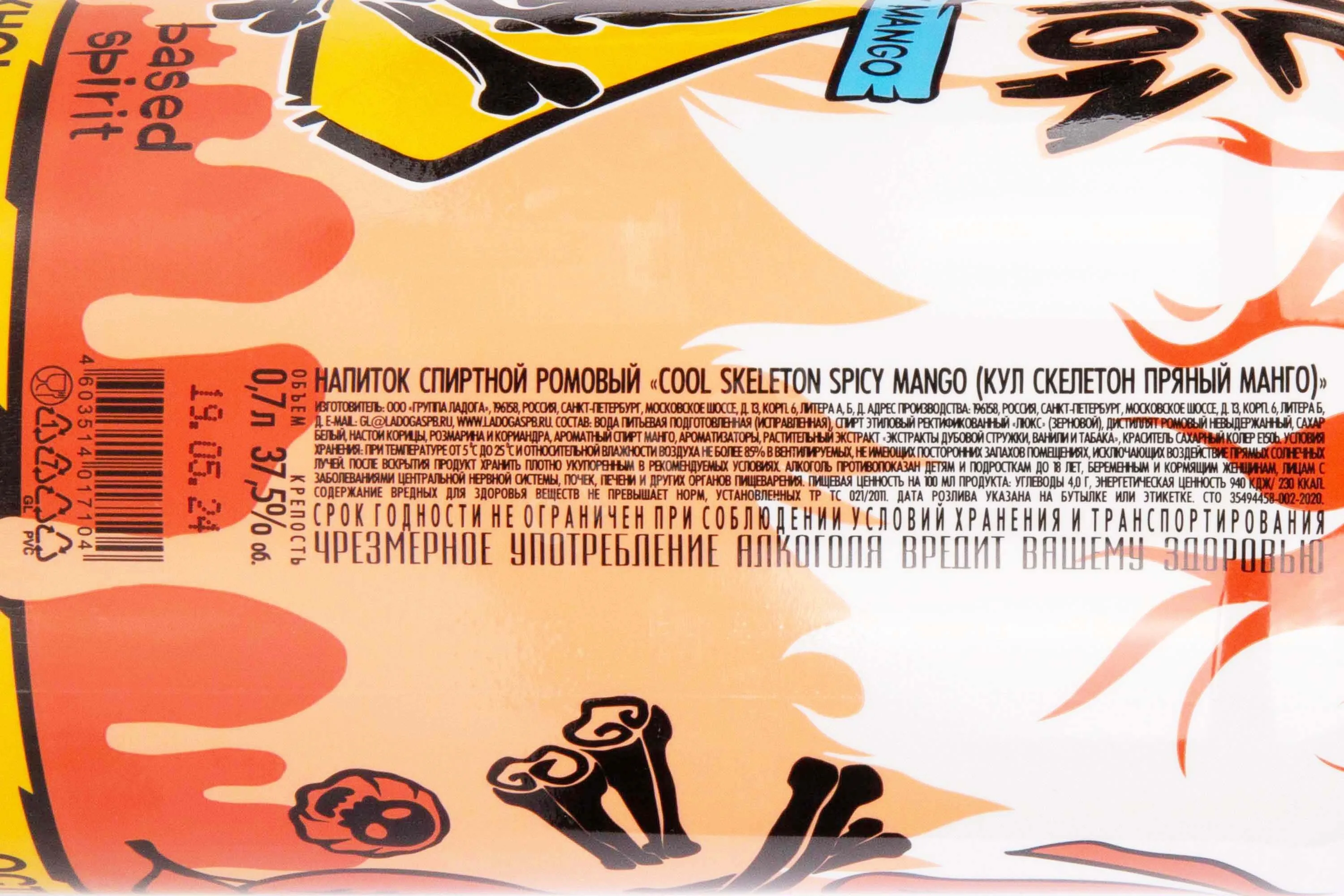 Cool Skeleton Spicy Mango 0.7 л купить - Ром Кул Скелетон Пряный Манго цена в магазине г. Москва, ул. Профсоюзная, д. 16/10 10:00-22:00 Ежедневно +7 (495) 920-20-02 info@cru.ru