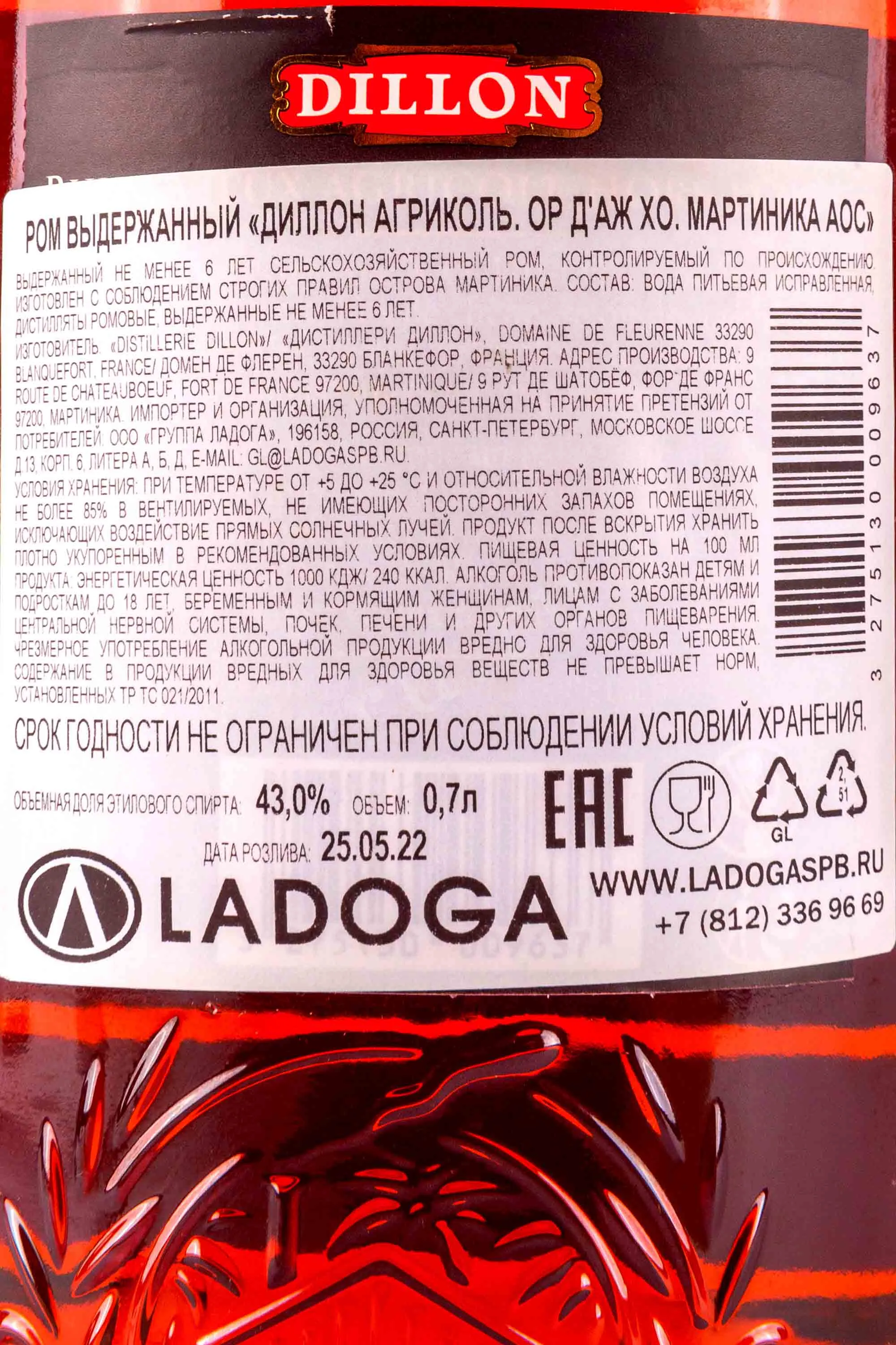 Ром Dillon Hors d'Age XO Martinique 0,7 л — выдержанный образец премиального уровня. Создаётся из свежего сока сахарного тростника, выращенного на вулканических почвах северной Мартиники. Растения получают питание из минерализованной земли и влаги, благодаря тёплому климату с частыми дождями и мягким бризам Атлантики. Сырьё перерабатывается в течение суток после сбора, что позволяет сохранить натуральную свежесть. Перегонка проходит в колонне при крепости около 65%. Выдержка длится не менее шести лет в дубовых бочках, где ром набирает сложный вкус и аромат. Часть ёмкостей ранее использовалась для хранения бурбона, что добавляет дополнительную глубину. После созревания напиток доводят до крепости 43% алкоголя. Производство ведётся по традиционной технологии агриколь, при которой жом от тростника используется как топливо.