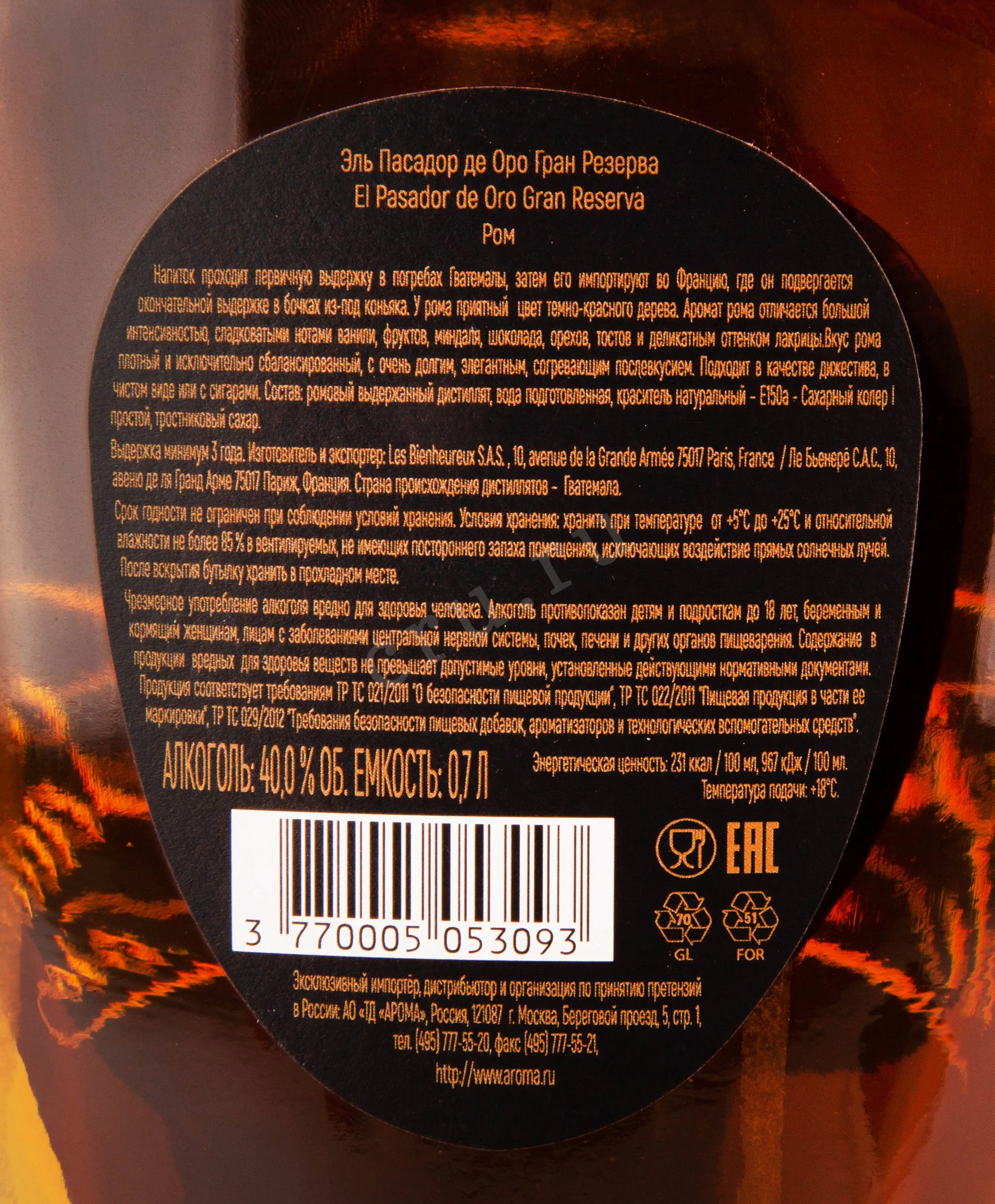 El Pasador de Oro Gran Reserva gift box 0.7 л купить - Ром Эль Пасадор Де Оро Гран Резерва в подарочной коробке цена в магазине г. Москва, ул. Профсоюзная, д. 16/10 10:00-22:00 Ежедневно +7 (495) 920-20-02 info@cru.ru