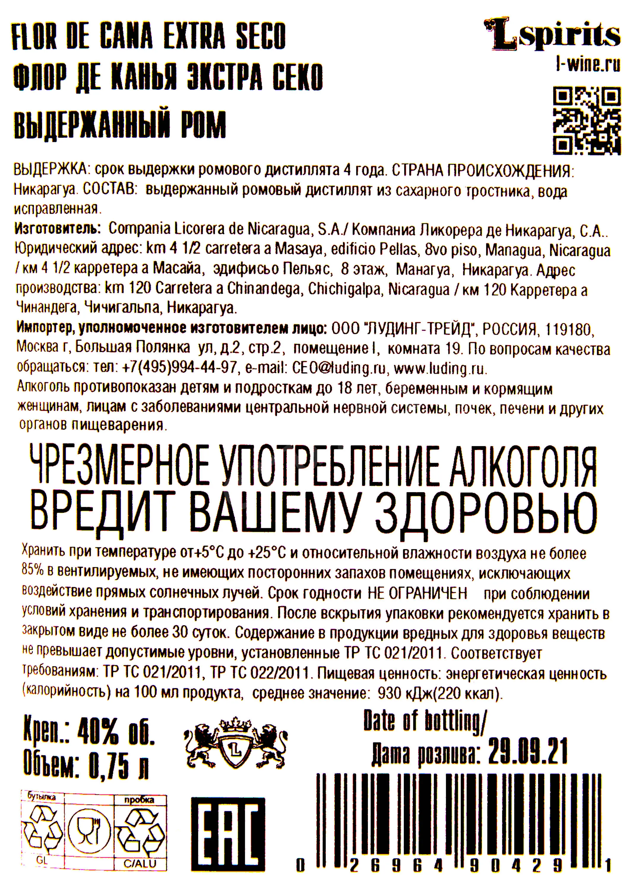 Ром Flor de Cana Extra Seco 4 years 0.75 l – это премиальный белый rum, изготовленный из экологически чистых компонентов: сахарного тростника, воды и натуральных дрожжей. Сусло подвергается пятикратной перегонке, после чего переливается в бочки из белого американского дуба из-под бурбона и хранится не менее 4-х лет. 40-процентный алкоголь является обладателем золотых и серебряных медалей, полученных на международных дегустационных конкурсах в Мадриде, Сан-Франциско и Лондоне.