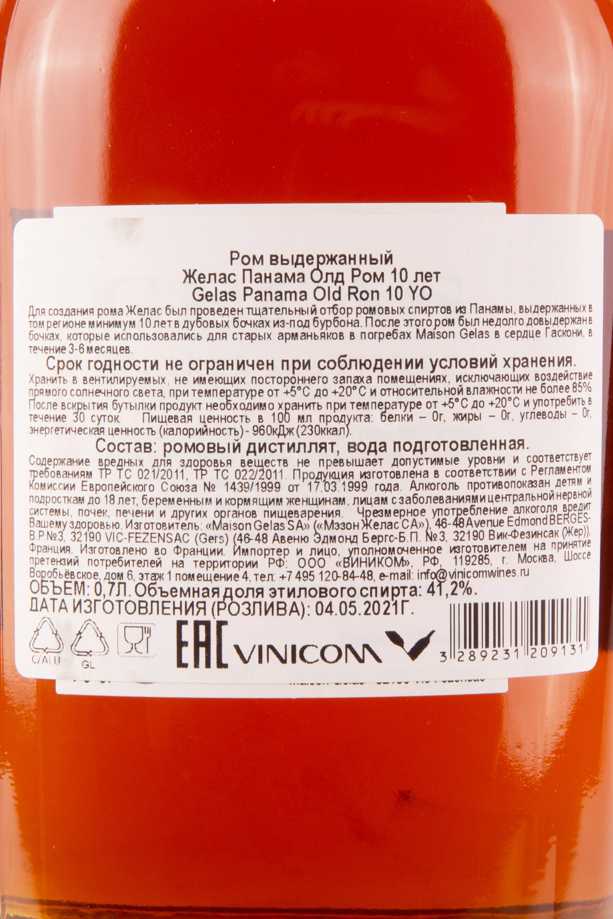 Ром Gelas Panama Old Ron 10 лет 0,7 л в подарочной упаковке — это крепкий выдержанный напиток с богатой историей. Он создаётся из панамских тростниковых спиртов, отобранных за глубокий букет. Первичная выдержка занимает минимум десять лет в бочках из-под американского бурбона, что придаёт дистиллятам характерный янтарный цвет и тёплую основу вкуса. Затем следует второй этап созревания — во Франции, в бочках, где ранее хранился арманьяк от Maison Gélas. В результате рождается сбалансированный продукт с насыщенной структурой, сложным сочетанием пряных и древесных акцентов.