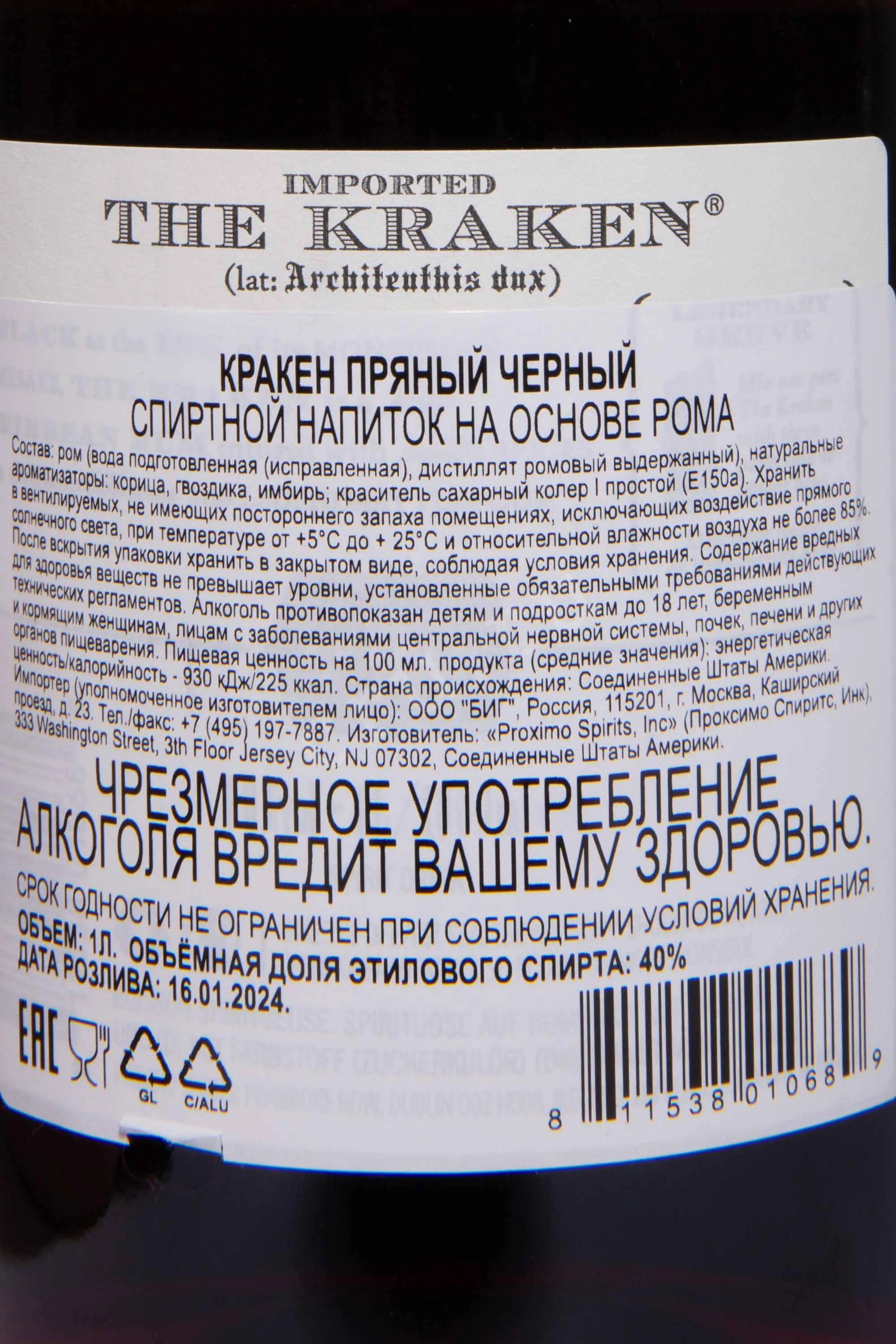 Kraken Black Spiced 1 л купить - Ром Кракен Пряный Черный цена в магазине г. Москва, ул. Профсоюзная, д. 16/10 10:00-22:00 Ежедневно +7 (495) 920-20-02 info@cru.ru