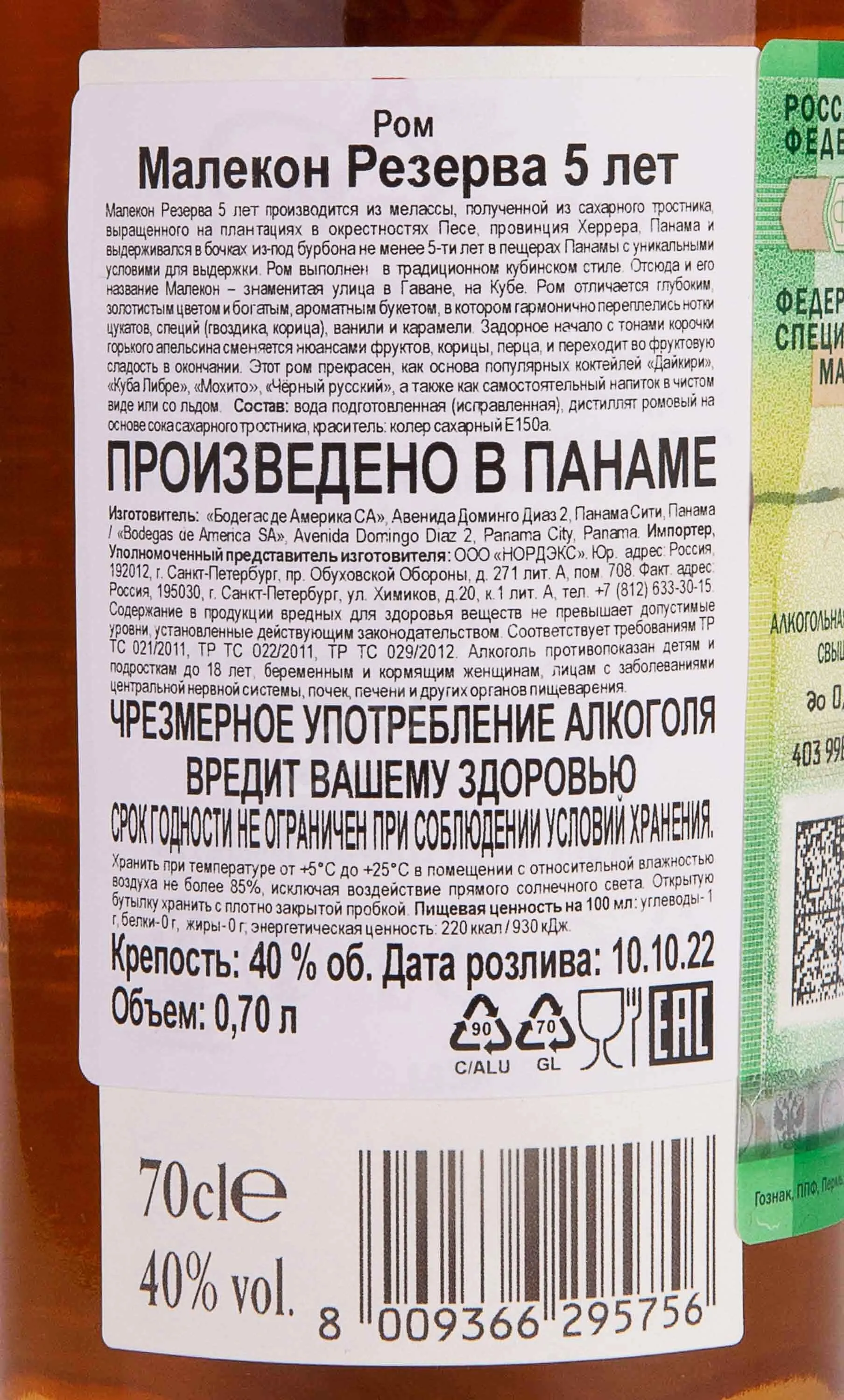 Малекон Гран Резерва 5 лет 0.7