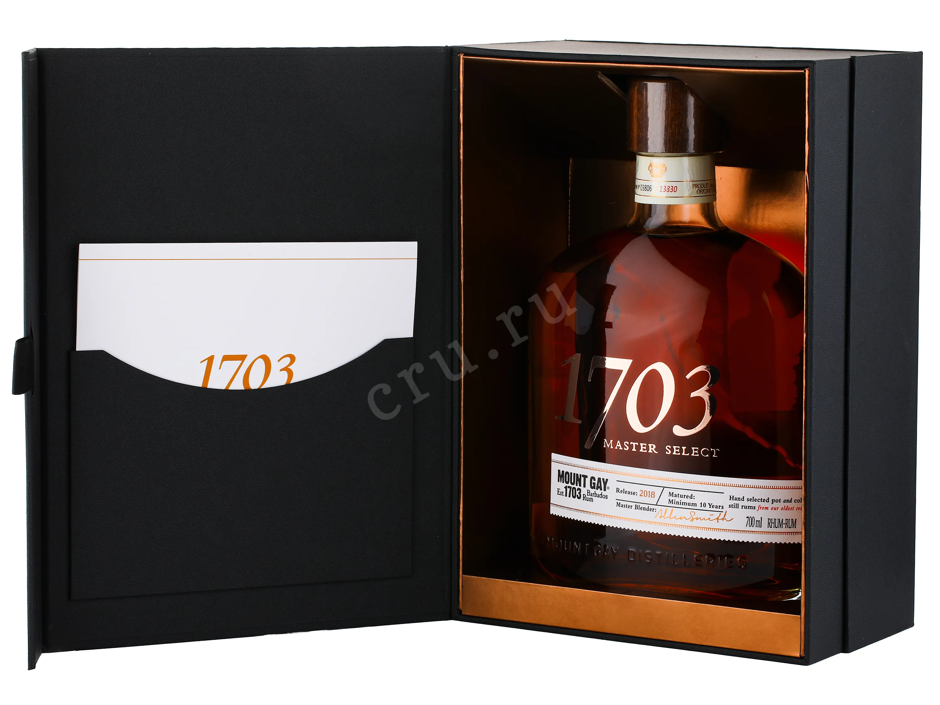 Ром Mount Gay 1703 Old Cask Selection gift box 0.7 l – это элитный барбадосский темный rum, созданный лично мастером-купажистом компании Алленом Смитом. 43-процентный пиратский напиток выдерживается в бочках из американского дуба из-под бурбона не менее 10 лет, а отдельные спирты из общего бленда хранились даже до 30 лет. Эксклюзивный ром можно приобрести в сувенирной фирменной коробке.
