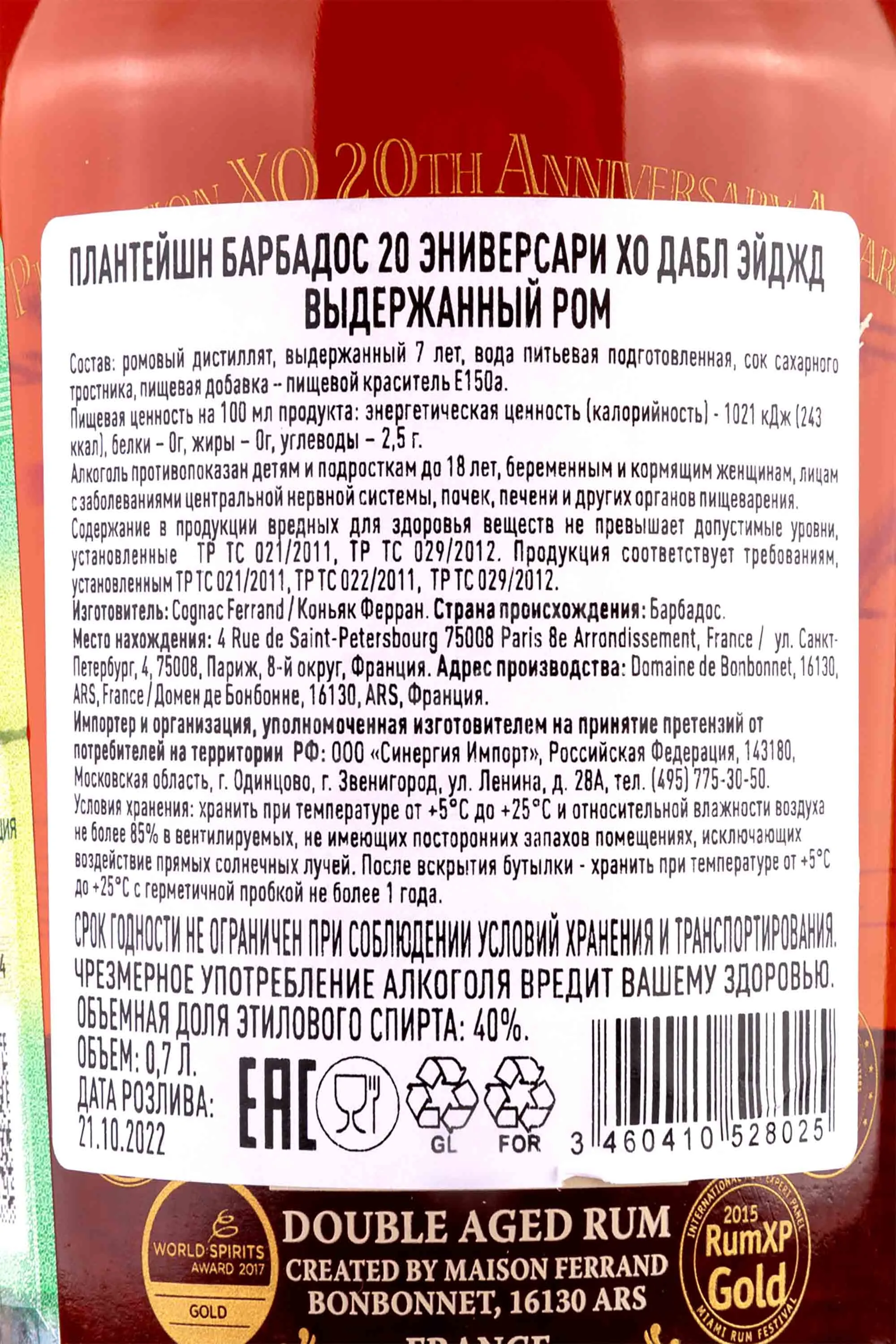 Ром Plantation Barbados XO 20 Anniversary gift box 0.7 l – это премиальный темный rum от французского производителя, выпускаемый в презентабельных подарочных боксах. Изготавливают напиток путем непрерывной дистилляции в медных аламбиках и вертикальных ректификационных колоннах. Созревание спиртов протекало сначала на Барбадосе в течение 20 лет в тарах из-под бурбона, а после еще 1-1.5 года во Франции в барриках из лимузенского дуба из-под коньяка. Пиратский напиток был отмечен серебряной медалью на дегустационном конкурсе в Лондоне.