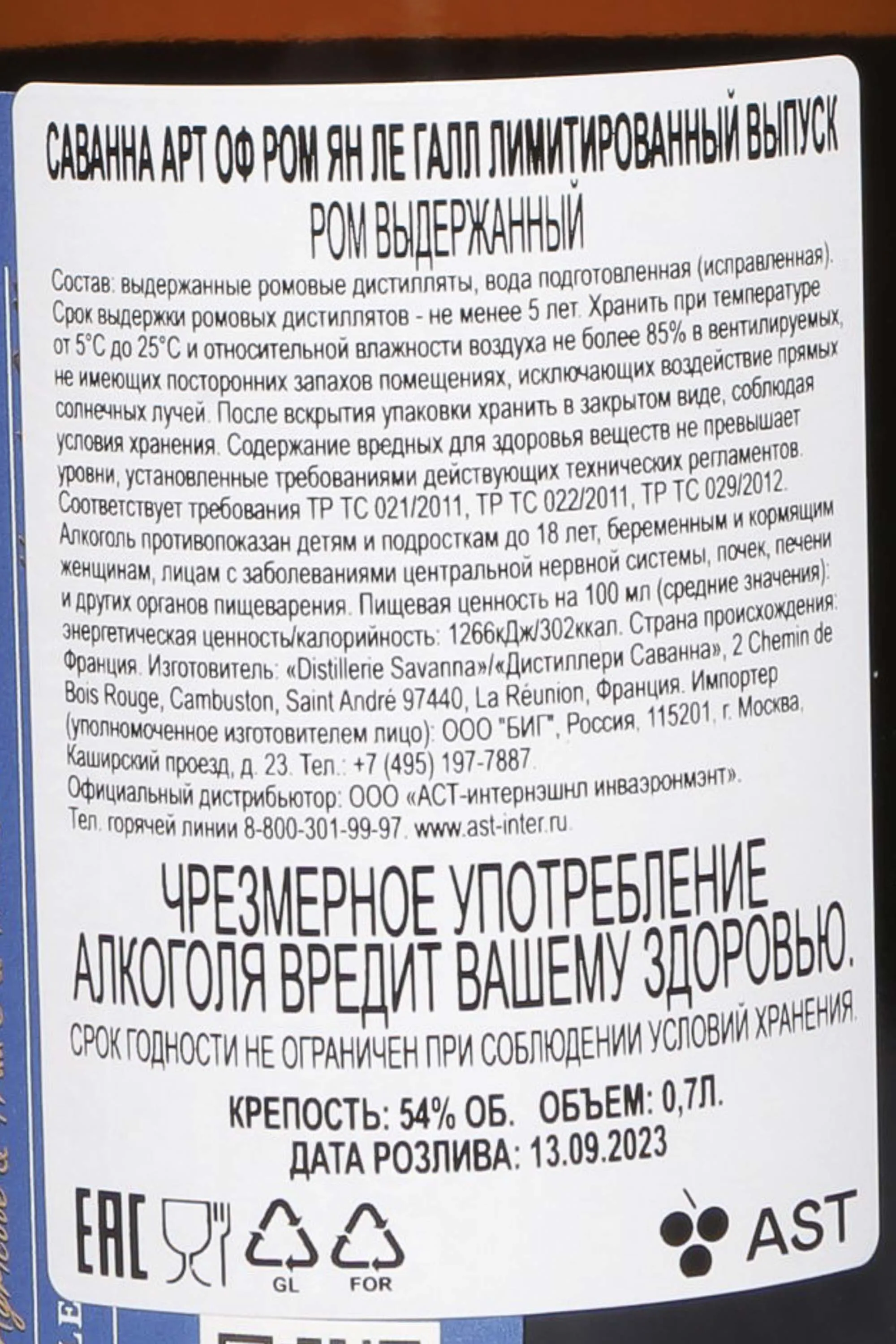 Ром Savanna Art of Rum by Yann le Gall 0,7 л в подарочной упаковке — это коллекционный релиз, созданный на стыке искусства живописи и искусства купажирования. Это второй проект в серии Саванна Арт, посвященный французскому художнику Яну Ле Галлю. Напиток представляет собой купаж трёх ромов: два из них изготовлены из мелассы и прошли выдержку в бочках из-под коньяка, а третий — из свежего сока сахарного тростника (Агриколь). Выдержка протекал в коньячных бочках (5-9 лет) в условиях тропического климата острова Реюньон, что усилило насыщенность вкуса. Лимитированный характер релиза делает его особенно ценным: было выпущено всего 2,5 тыс. бутылок. Ром получил высокие оценки критиков за гармоничное сочетание сложного вкуса и художественной концепции оформления.