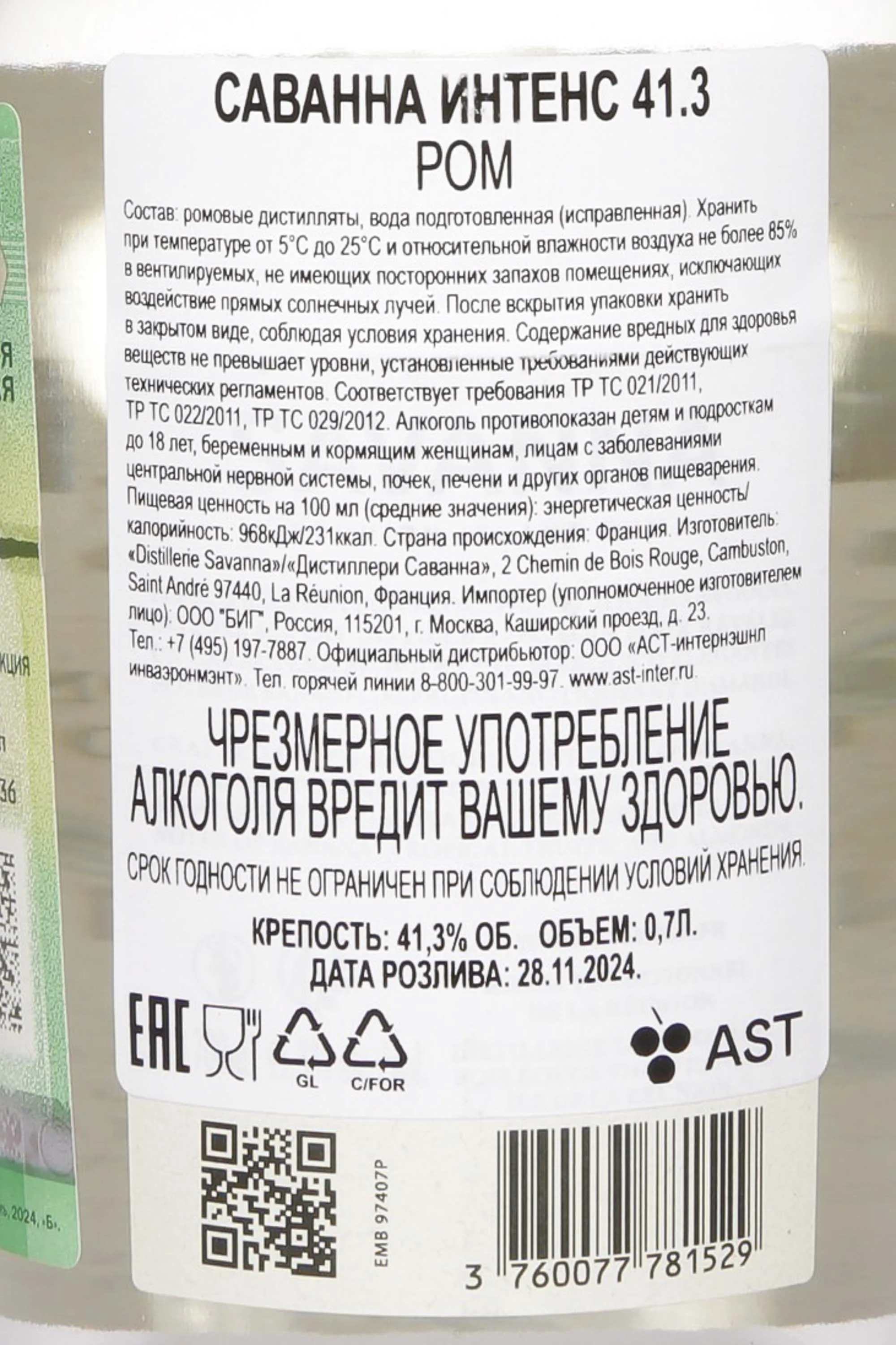 Ром Savanna Intense 41.3 0,7 л — это традиционный белый сорт с аутентичным характером острова Реюньон. Процесс производства сочетает вековые методы дистилляции с современными технологиями, обеспечивая напитку гармоничный и насыщенный профиль. Основой служит меласса, полученная из сока местного сорта сахарного тростника, выращенного на богатых вулканических почвах. Сбраживание длится менее суток с использованием уникального штамма дрожжей, выращенного на тростнике, что придаёт рому индивидуальность. Перегонка проходит в классической колонне непрерывного цикла, а затем дистиллят отдыхает в емкостях из нержавеющей стали и разбавляется родниковой водой до крепости 41,3%. Этот ром отличается чистотой, сбалансированностью и мягкой фруктовой насыщенностью.