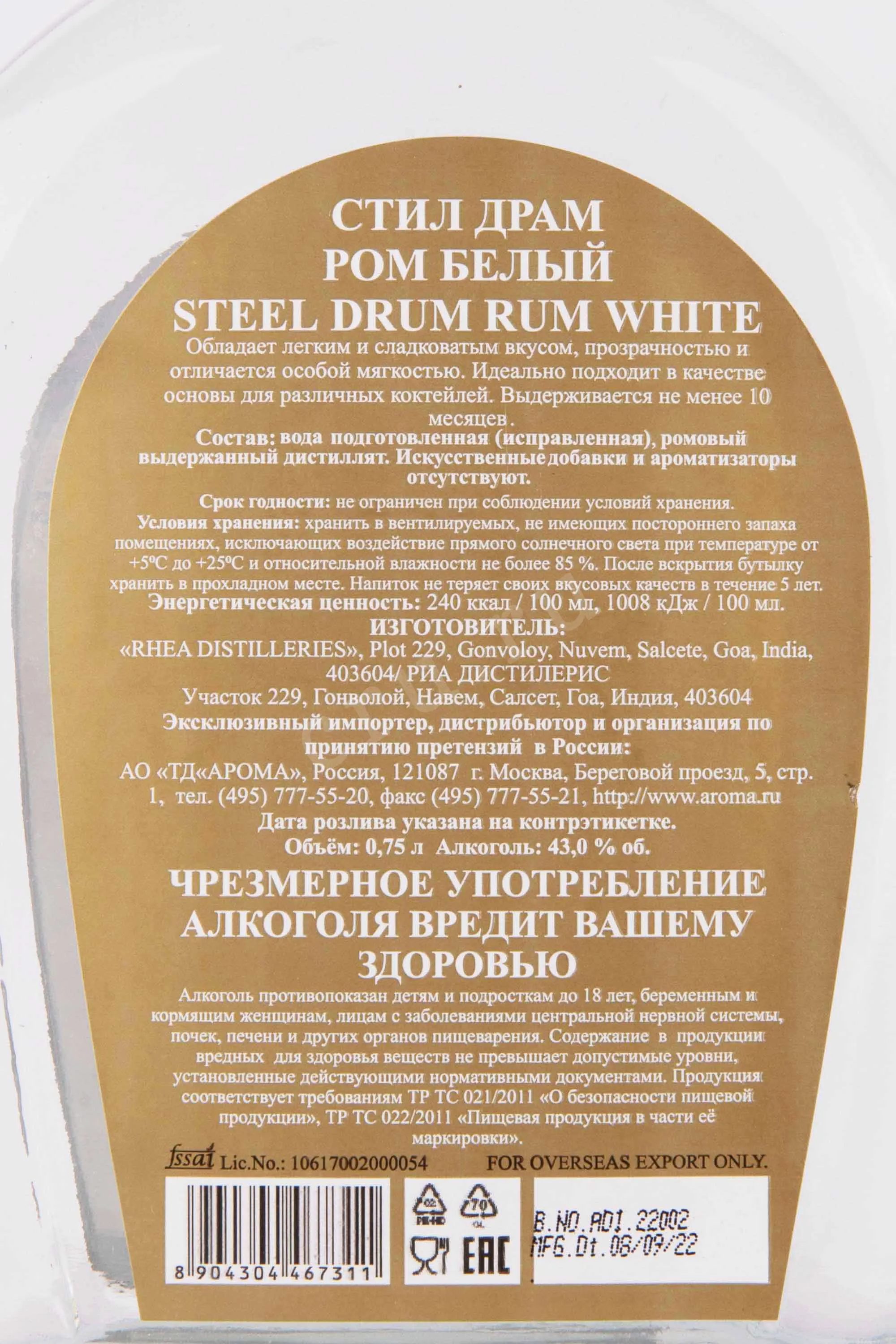 Steel Drum White 0.75 л купить - Ром Стил Драм Белый цена в магазинег. Москва, ул. Профсоюзная, д. 16/1010:00-22:00 Ежедневно+7 (495) 920-20-02info@cru.ru