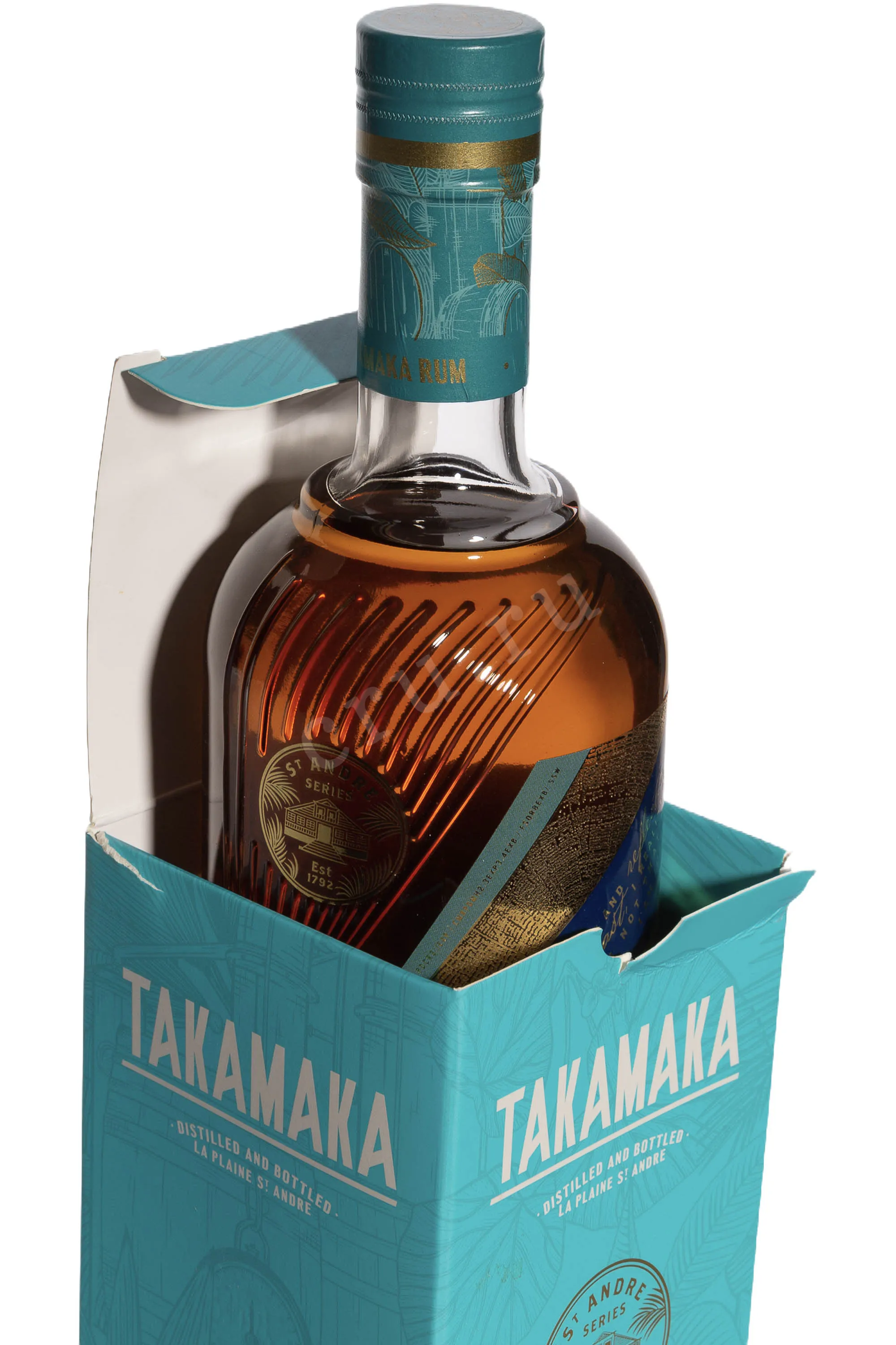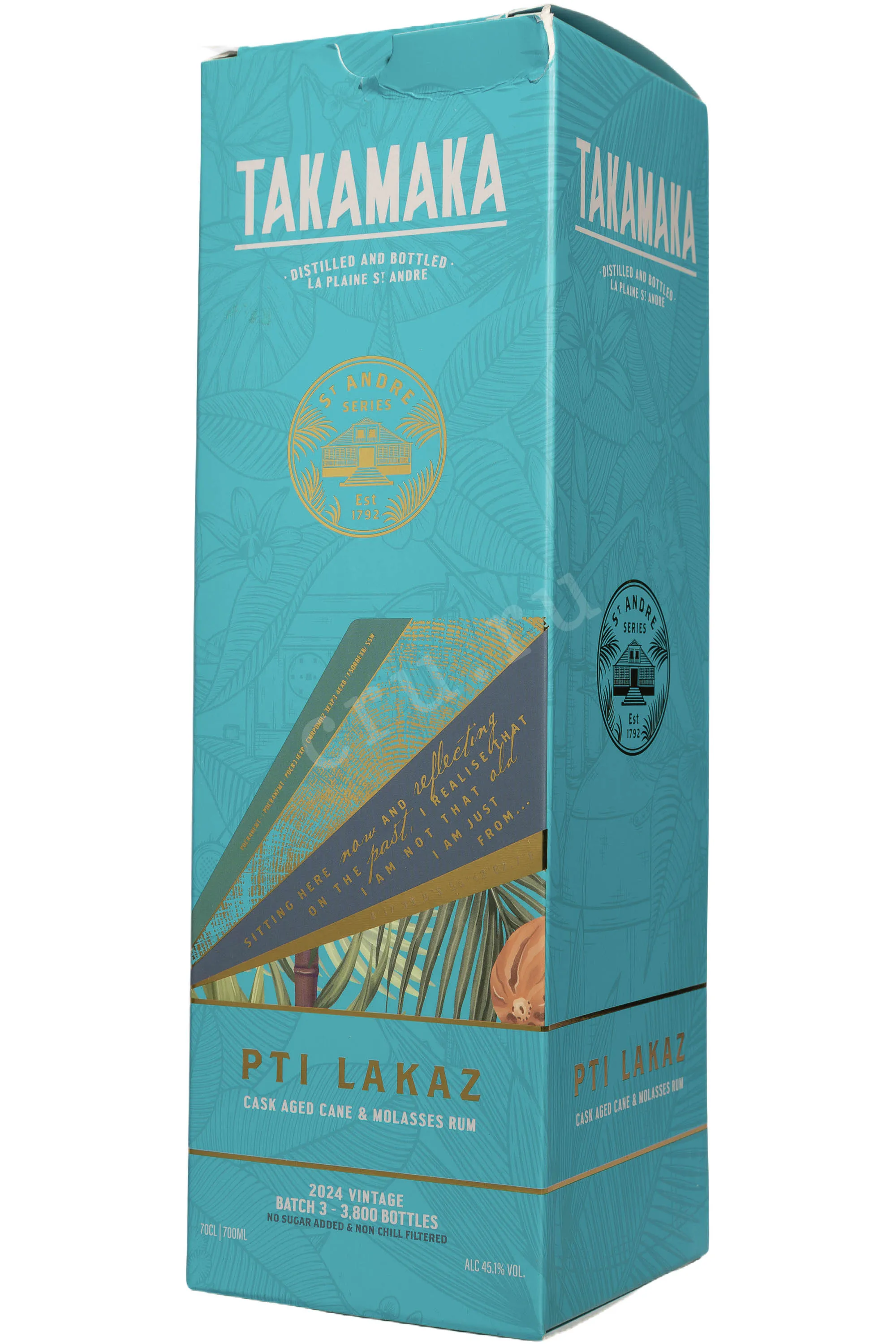 Ром Takamaka Pti Lakaz в подарочной упаковке 0.7 л — купаж с ярко выраженным островным характером и стилем agricole. Он создан из спиртов разного происхождения и возраста, что формирует сложный и при этом цельный профиль. В качестве основы используют сахарный тростник с различных участков острова Маэ и родниковую воду из природных источников. Гранитные почвы с примесью пляжного песка заметно влияют на стиль напитка. Тростник перерабатывают непосредственно на винокурне, а ферментация проходит в емкостях из нержавеющей стали. В купаж входит сейшельский ром из свежего тростникового сока, выдержанный в четырех типах бочек, включая емкости из-под портвейна и новые бочки из французского дуба. Его дополняют ром из патоки, перегнанный как на колонне, так и в pot still, с трехлетней выдержкой в бурбонных бочках, а также восьмилетний ром с Барбадоса от Foursquare. Такамака Пти Лакас относится к коллекции St Andre, отражающей мастерство винокурни и креольские традиции. Ром не содержит красителей, добавленного сахара и не подвергается холодной фильтрации. Выпущен лимитированной серией в 3800 бутылок.