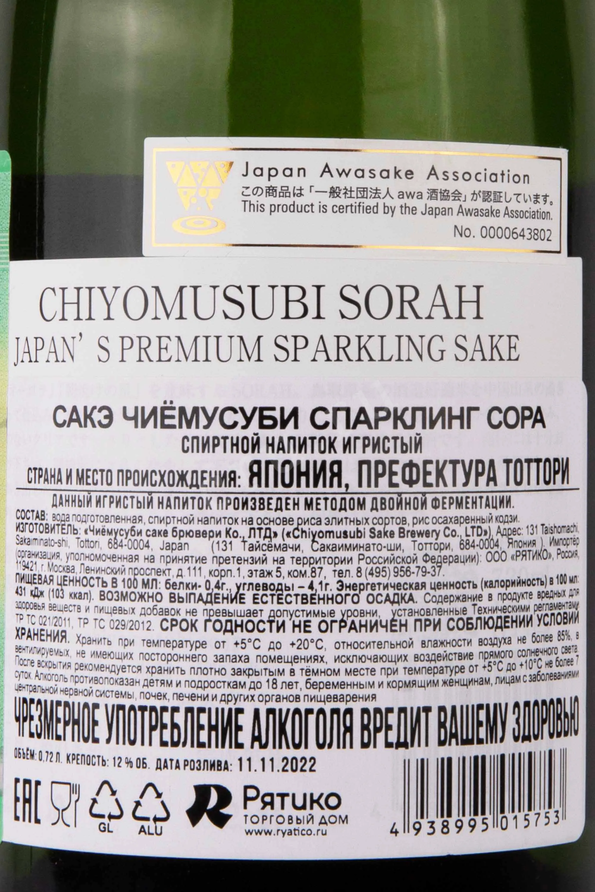 Chiyomusubi Sorah Sparkling 0.72 л купить - Саке Чиёмусуби Сора Спарклинг цена в магазине