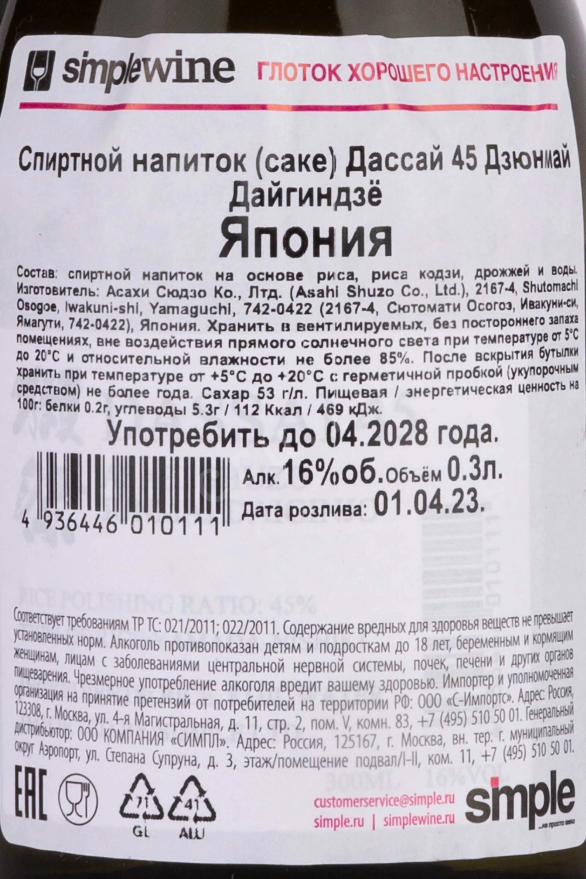 Dassai 45 Junmai Daiginjo 0.3 л купить - Саке Дассай 45 Дзюнмай дайгиндзё цена в магазине
