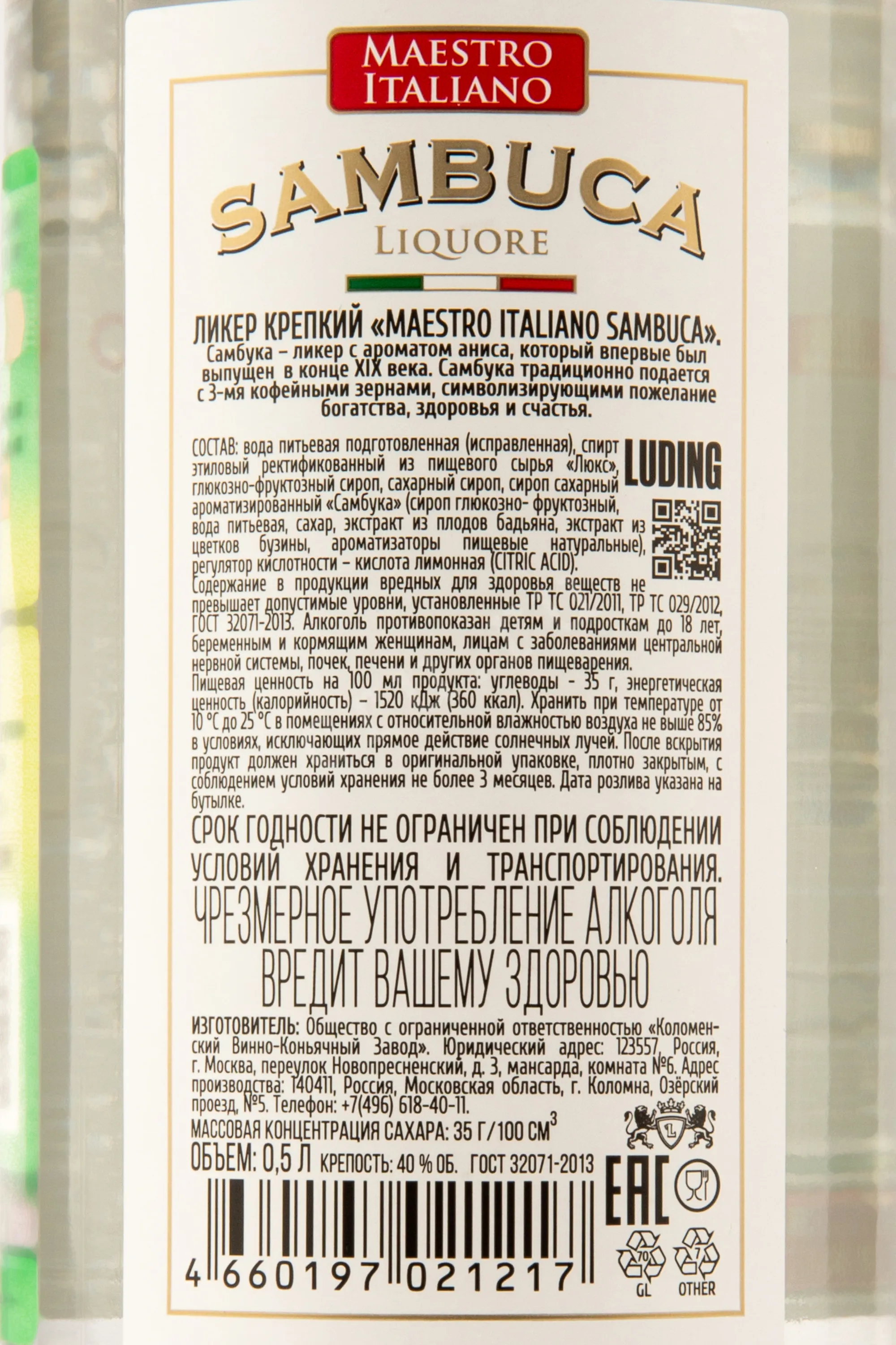 Maestro Italiano 0.5 л купить - Самбука Маэстро Итальяно цена в магазине