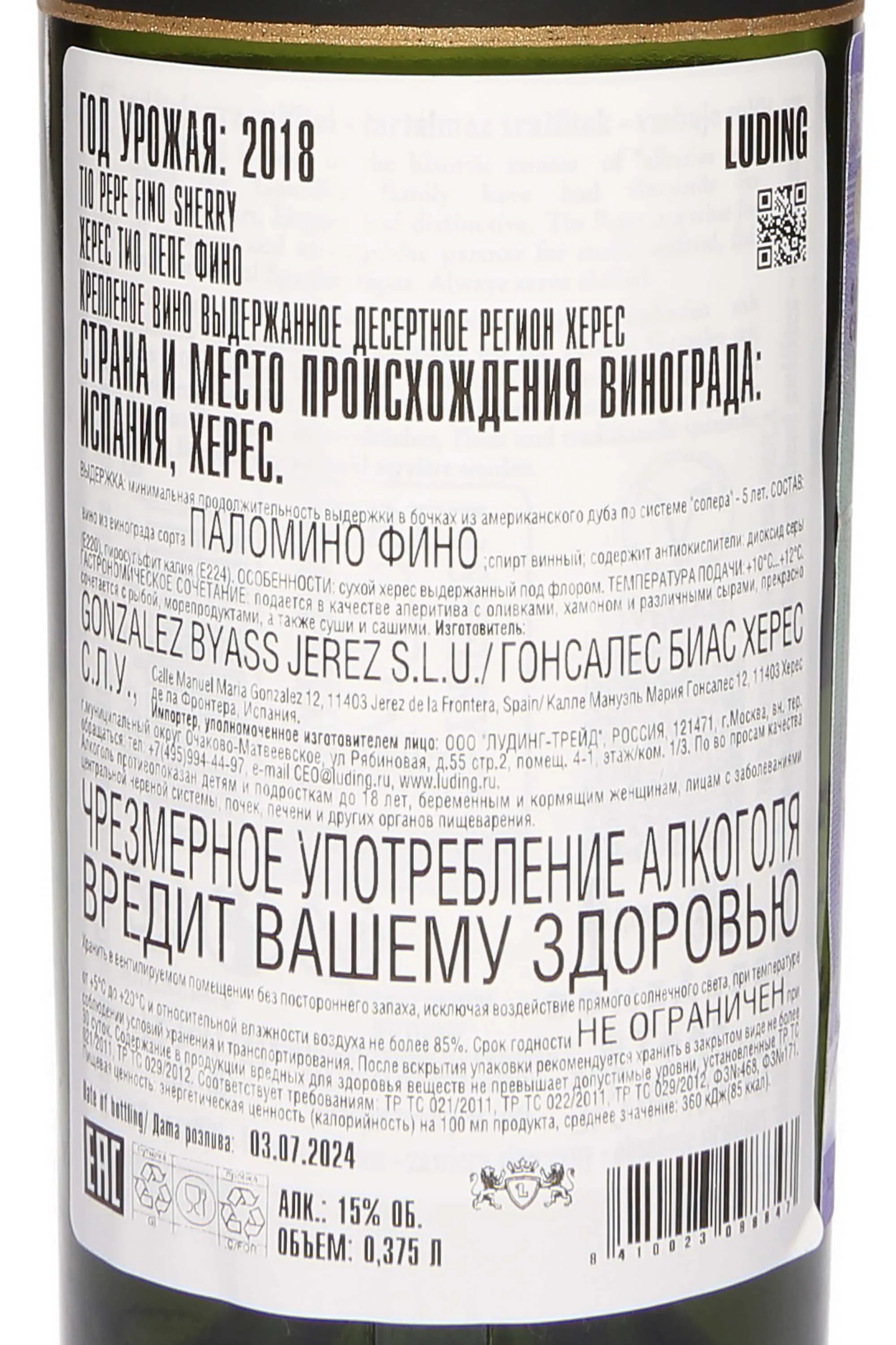 Херес Gonzalez Byass Tio Pepe Palomino Fino 2018 года 0,375 л — классический представитель стиля Фино, известный своей свежестью и сухим характером. Это первое крепленое вино, появившееся в линейке компании Гонзалез Биасс, которое принесло дому мировую известность. Для производства используется виноград сорта Паломино Фино, собранный в регионе Херес-де-ла-Фронтера. Вино выдерживается по традиционному методу солера не менее пяти лет, проходя через семиступенчатую систему бочек. Важная особенность заключается в развитии флёра — тонкой плёнки из дрожжей, которая формируется на поверхности в процессе винификации и защищает от окисления, придавая напитку характерную свежесть и минеральную остроту. Название «Тио Пепе» («Дядюшка Пепе») символично — херес посвящен дяде Мануэля Гонсалеса, вдохновившему основателя. Сегодня он считается эталоном своего стиля и регулярно отмечается наградами на международных конкурсах, входя в рейтинги лучших крепленых вин Испании.