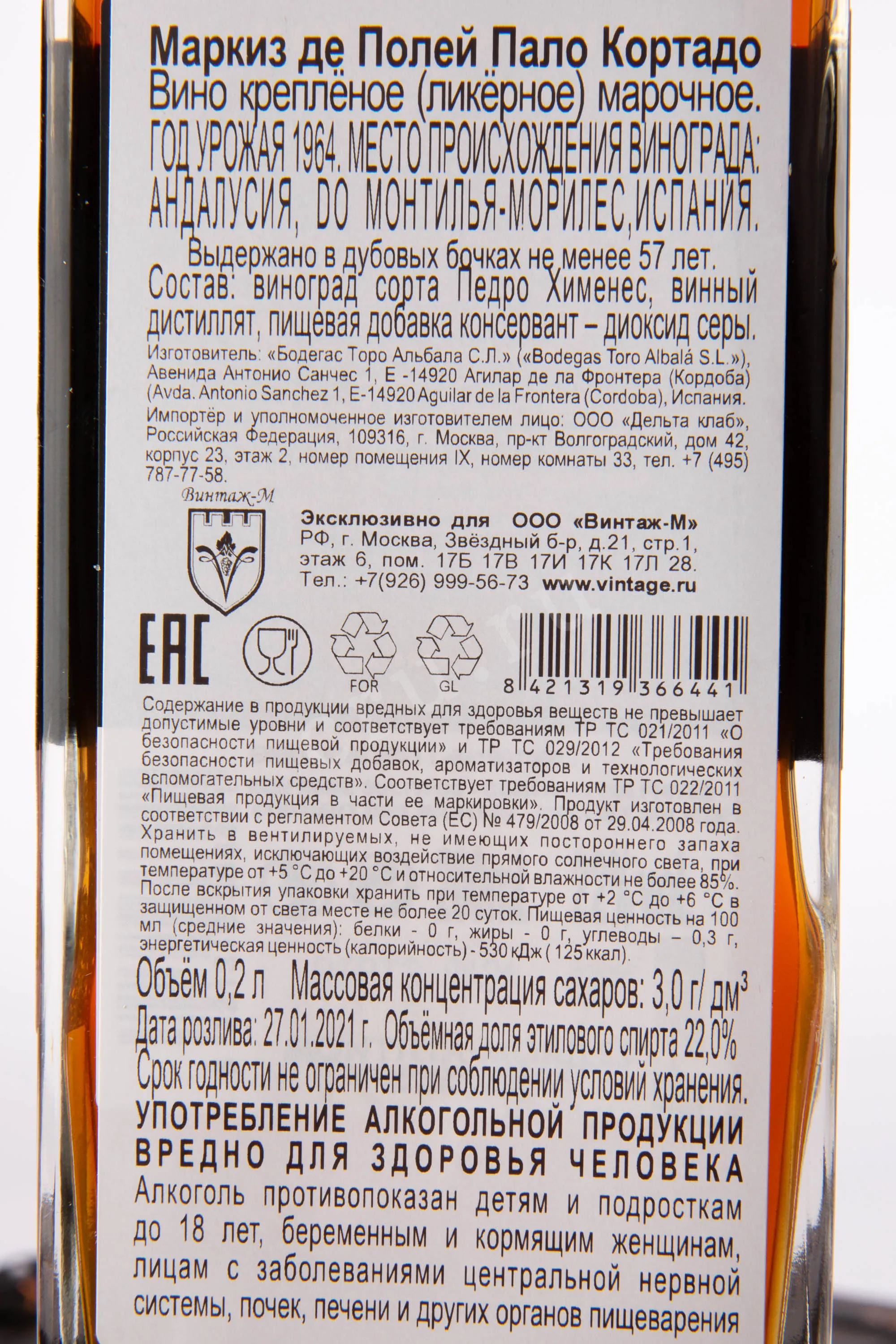 Маркиз де Полей Пало Кортадо в п/у 1964 0.2