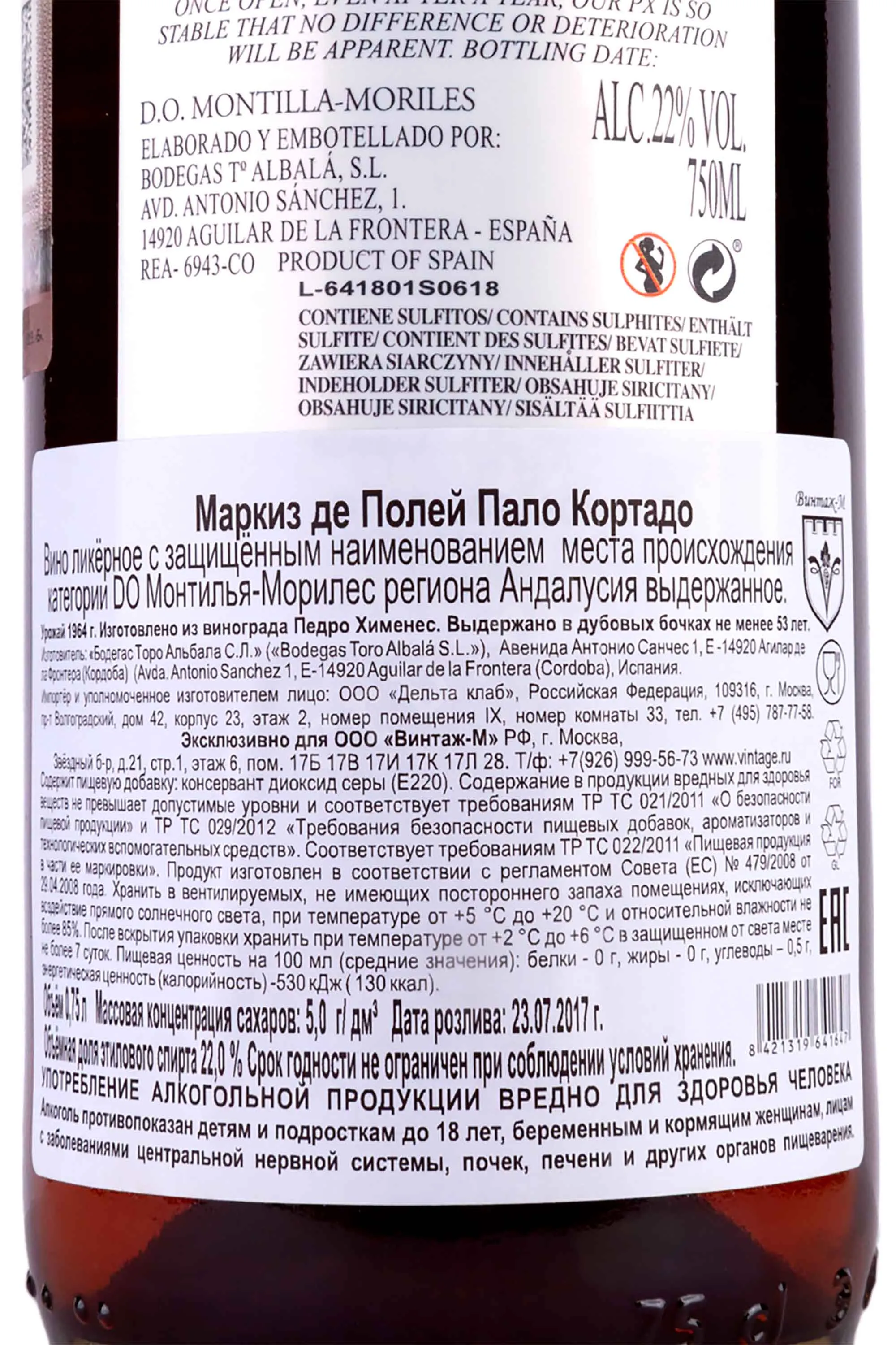Marques de Poley Palo Cortado Toro Albala with gift box 1964 0.75 л купить - Херес Маркиз де Полей Пало Кортадо Торо Альбала в подарочной упаковке цена в магазине г. Москва, ул. Профсоюзная, д. 16/10 10:00-22:00 Ежедневно +7 (495) 920-20-02 info@cru.ru