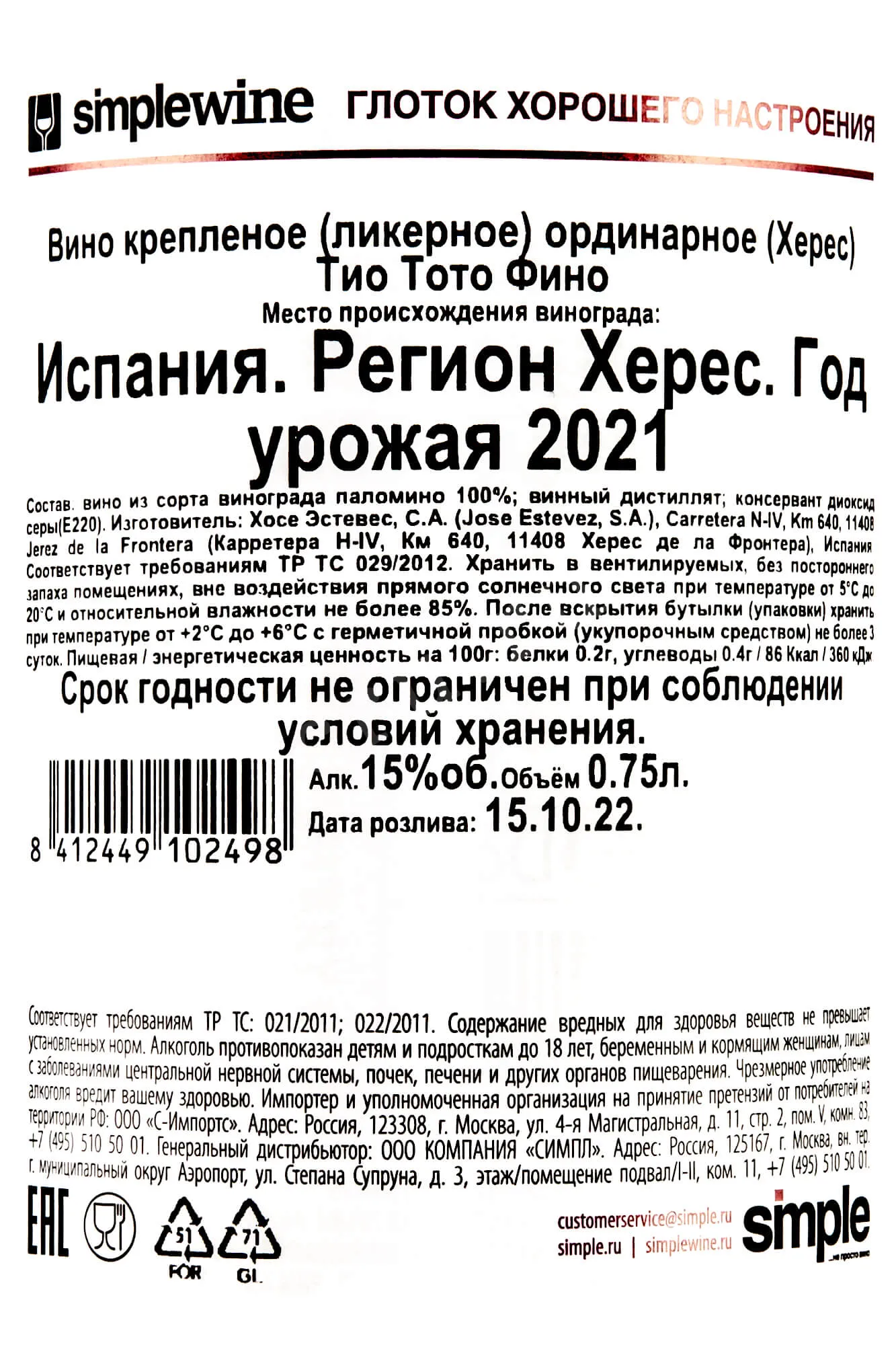 Тио Тото Фино 2021 0.75