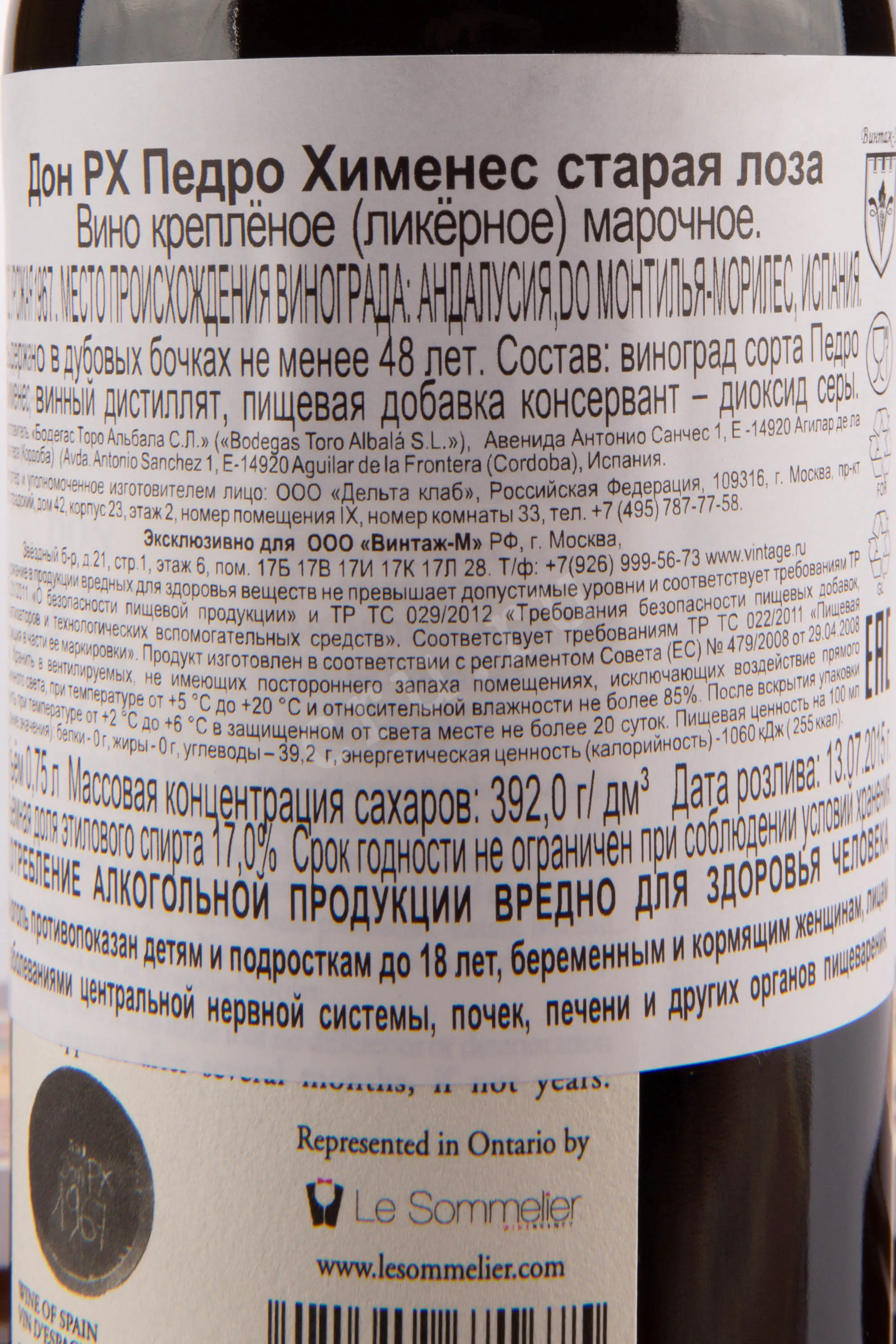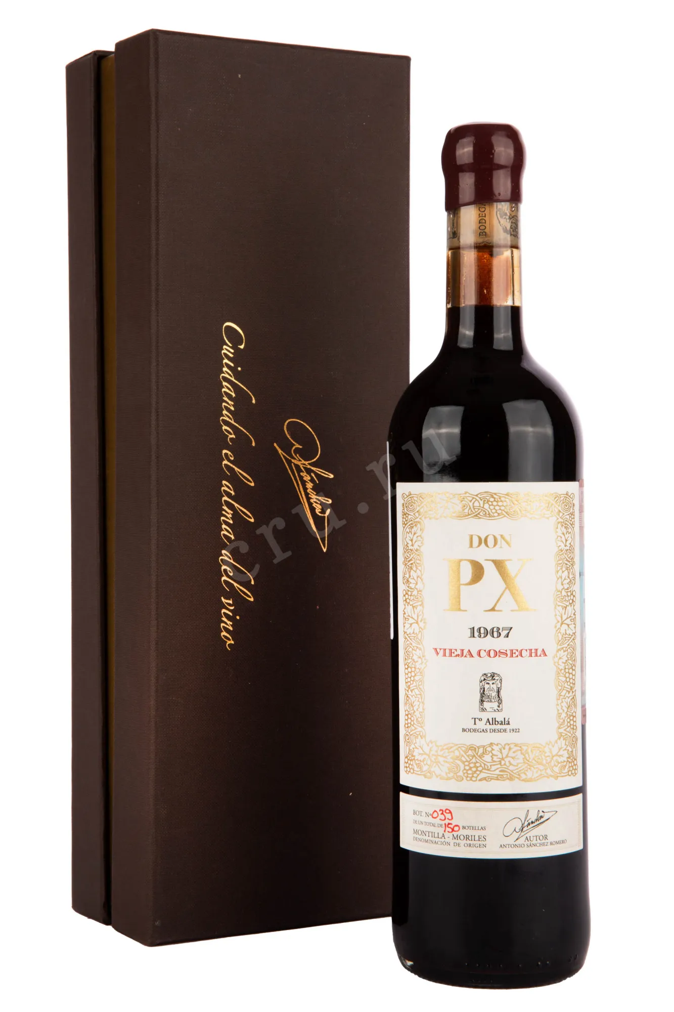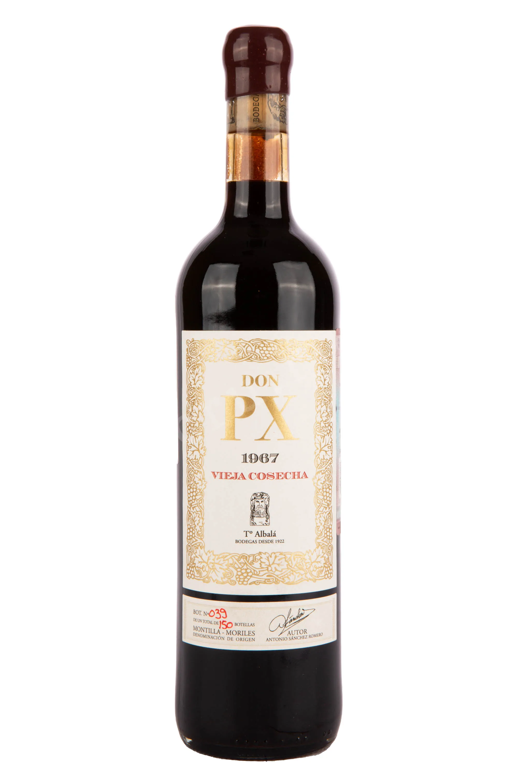 Херес Toro Albala Don PX Vieja Cosecha 1967 г. 0,75 л — это коллекционный миллезим из винограда сорта Pedro Ximénez, выращенного в регионе Монтийя-Морилес в испанской Андалусии. Сезон сбор сырья отличался жарким летом и сухой осенью, что способствовало высокой концентрации сахара в ягодах. Сняты с лоз урожай сушили на солнце по традиционной технологии асолео, превратив его в почти изюм. Такое сырье дало вину густую текстуру и яркую сладость. После остановки брожения напиток выдерживался десятилетиями в бочках из американского дуба, что позволило развить богатый букет и сложный вкус.