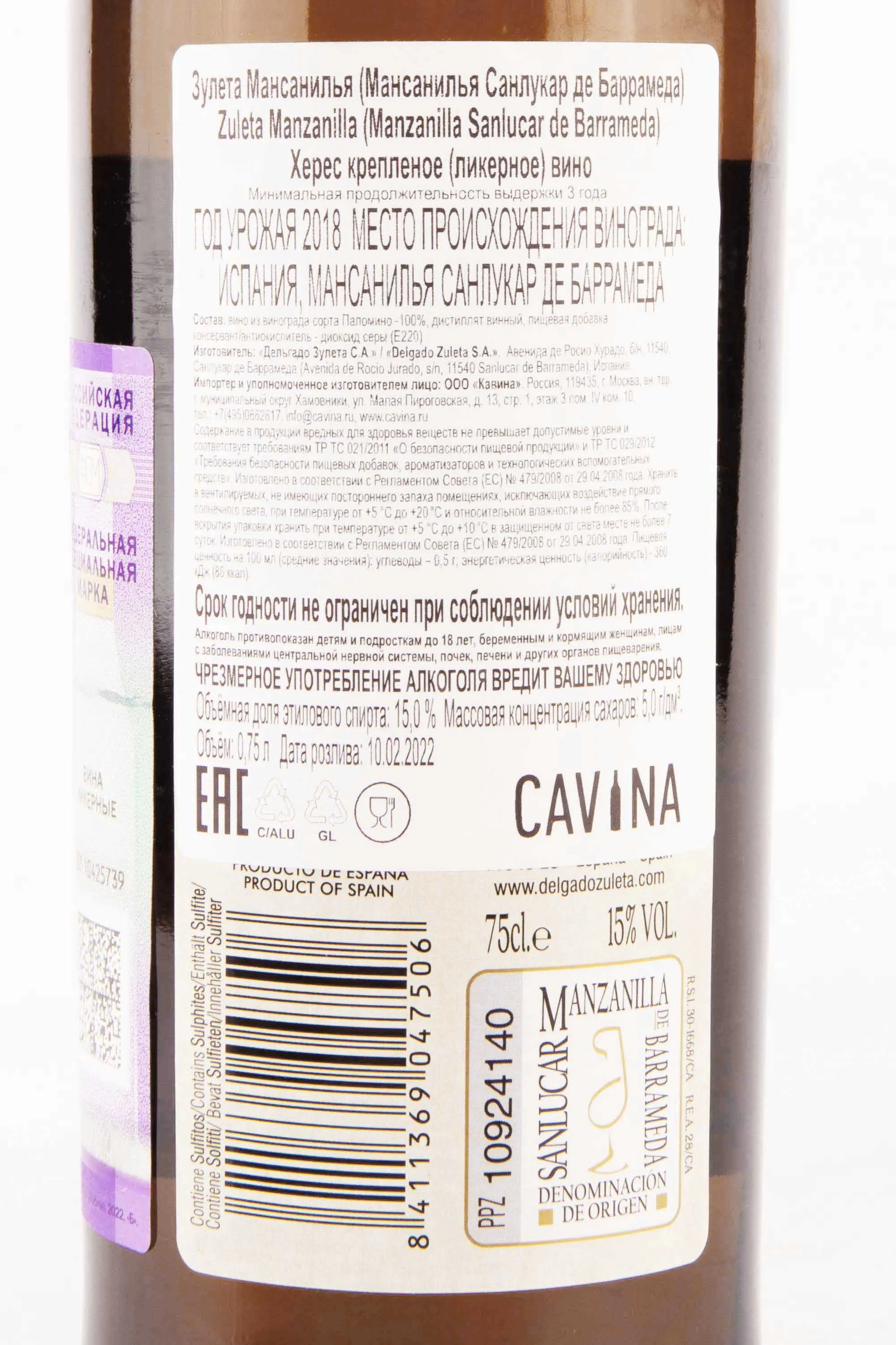 Зулета Мансанилья 2019 0.75