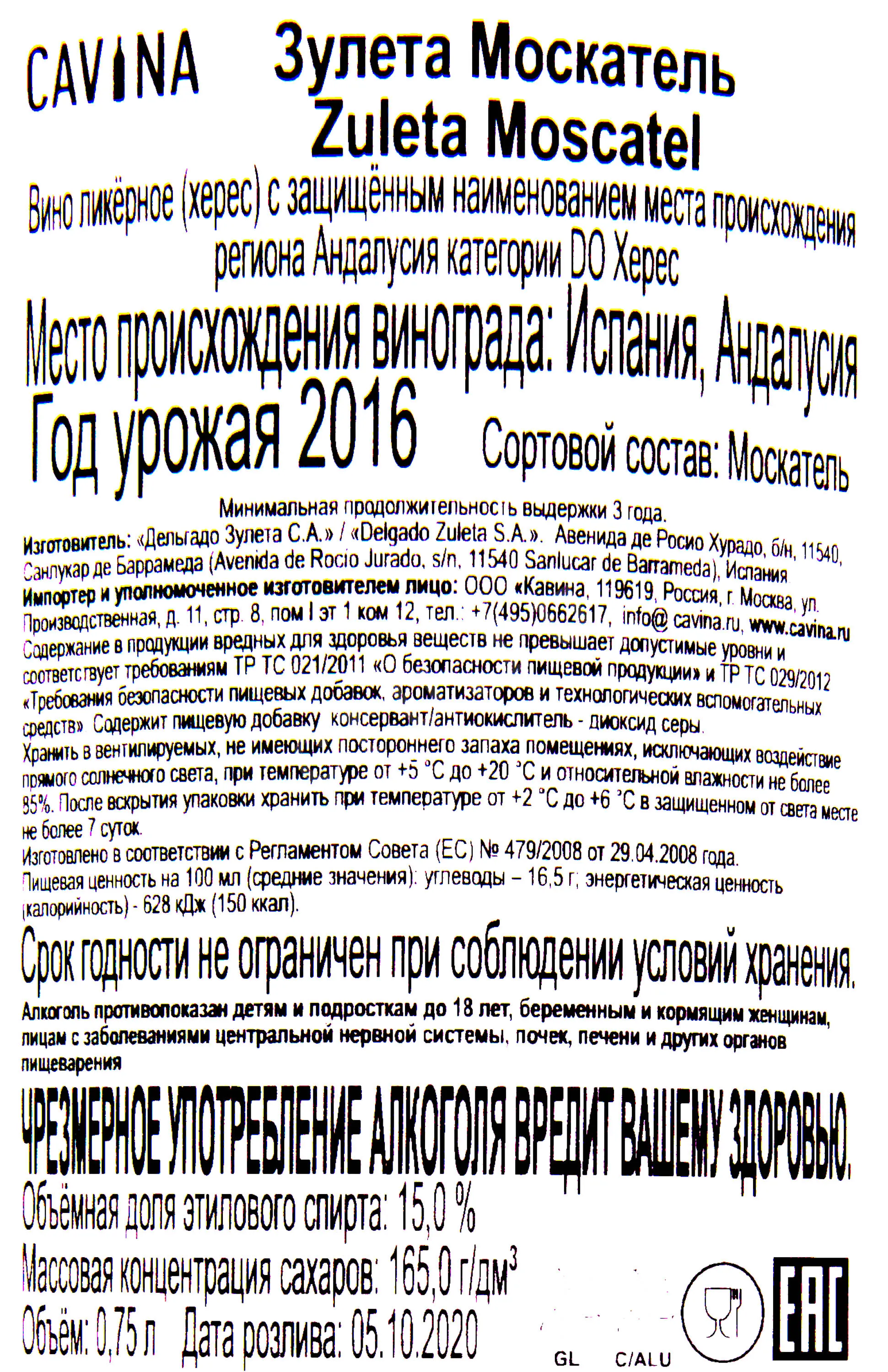 Zuleta Moscatel 2017 0.75 л купить - Херес Зулета Москатель цена в магазине
