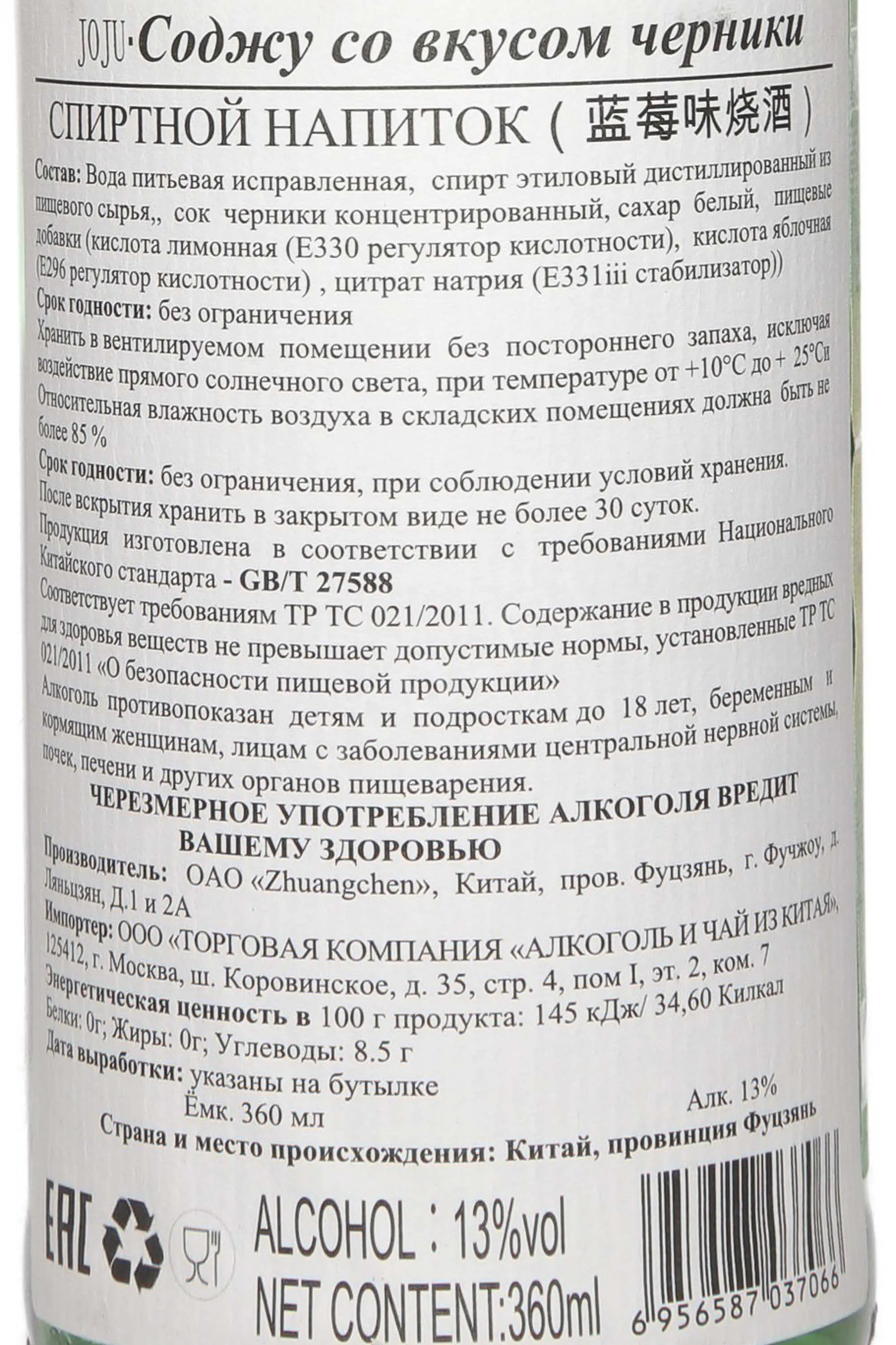 Соджу Joju Bilberry 0,36 л — это фруктовый вариант традиционного корейского напитка, приготовленного на основе риса и зерновых культур с добавлением сока черники. Его отличает мягкий вкус с характерной ягодной сладостью и кислинкой, а также невысокая крепость, благодаря чему он воспринимается легко и подходит для разных случаев. Производство включает многоступенчатую фильтрацию, дающую чистый и гармоничный продукт. Черника выращивается в регионах с умеренным климатом, где прохладные ночи и солнечные дни формируют насыщенный вкус и аромат ягод.
