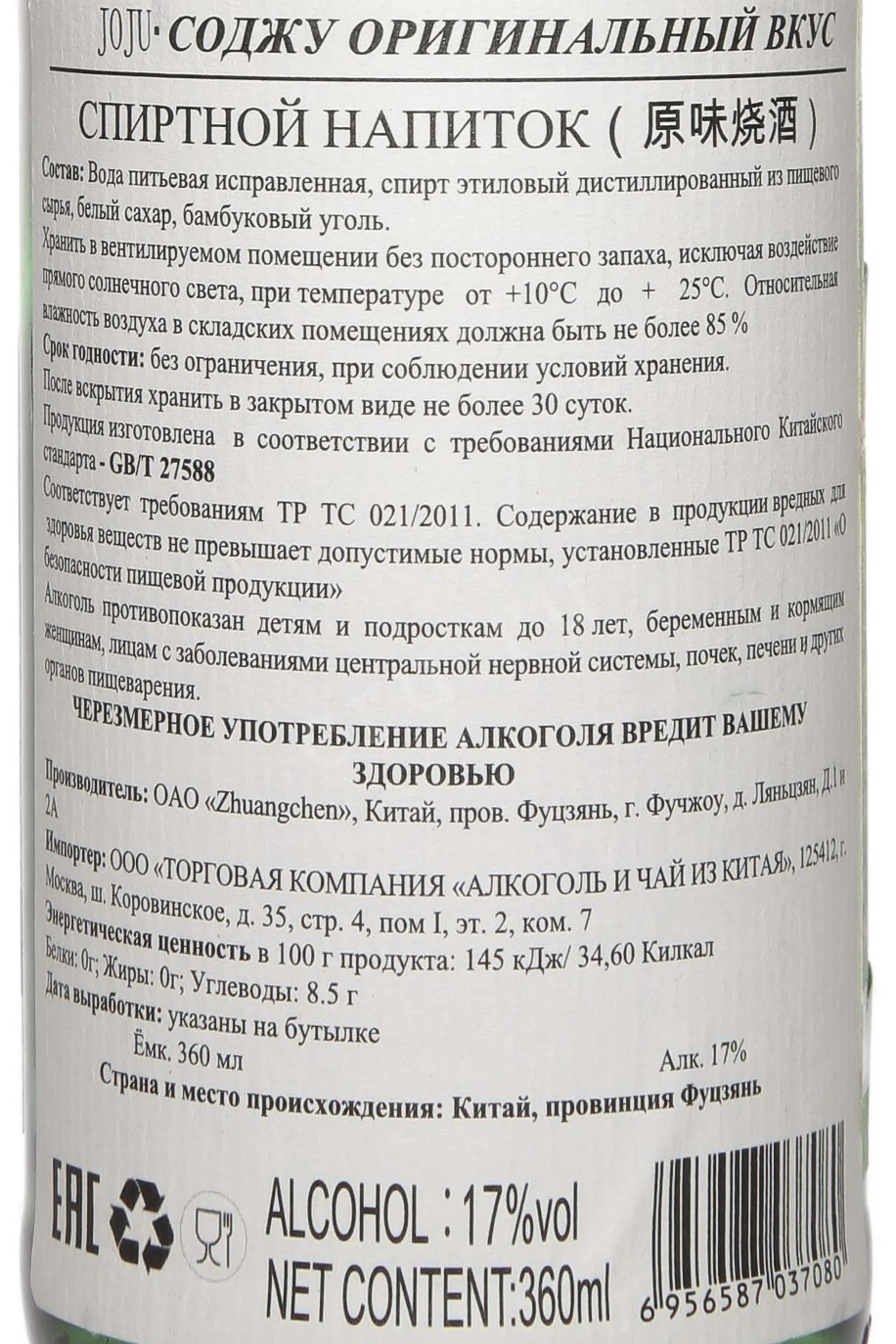 Соджу Joju Original 0.36 л — это изысканный алкогольный напиток, созданный по традиционной корейской рецептуре, но произведённый в Китае с использованием современных технологий и строгого контроля качества. В его основе лежат натуральные ингредиенты — рис, ячмень и сладкий картофель, которые проходят процесс ферментации с добавлением чистой артезианской воды. Многоступенчатая дистилляция и фильтрация через бамбуковый уголь придают напитку особую мягкость и прозрачность вкуса. Производство сосредоточено на китайском предприятии, где тщательно соблюдаются стандарты, характерные для оригинальных корейских соджу, что делает Joju Original достойным представителем своего класса. Напиток отличается чистотой, лёгкостью и гармонией вкусовых оттенков, благодаря чему стал популярным выбором среди ценителей восточных традиций.
