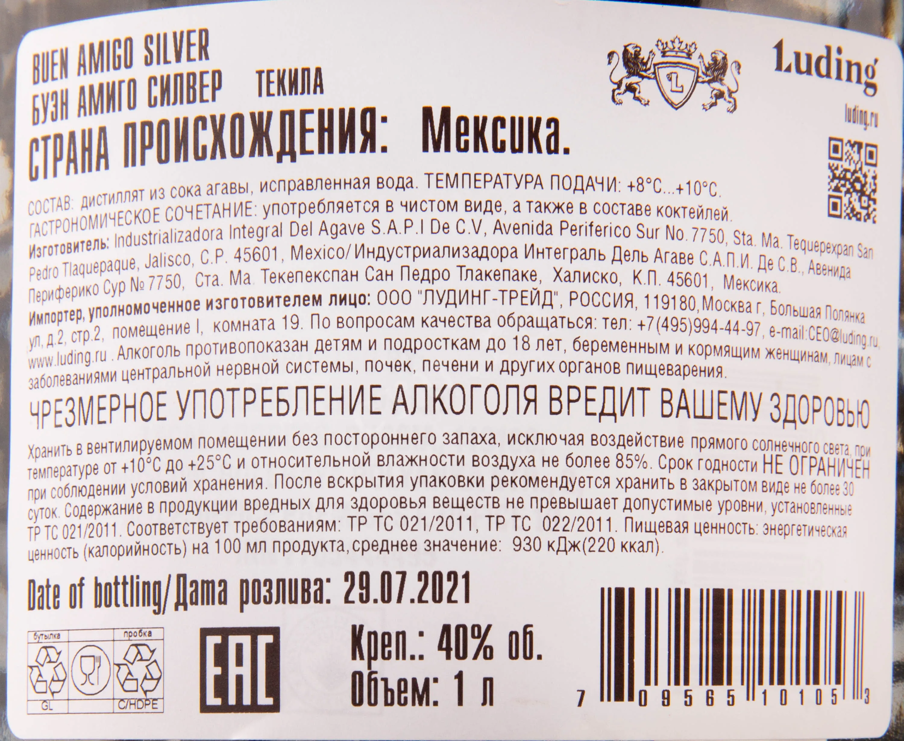 Buen Amigo Silver 1 л купить - Текила Буэн Амиго Силвер цена в магазине