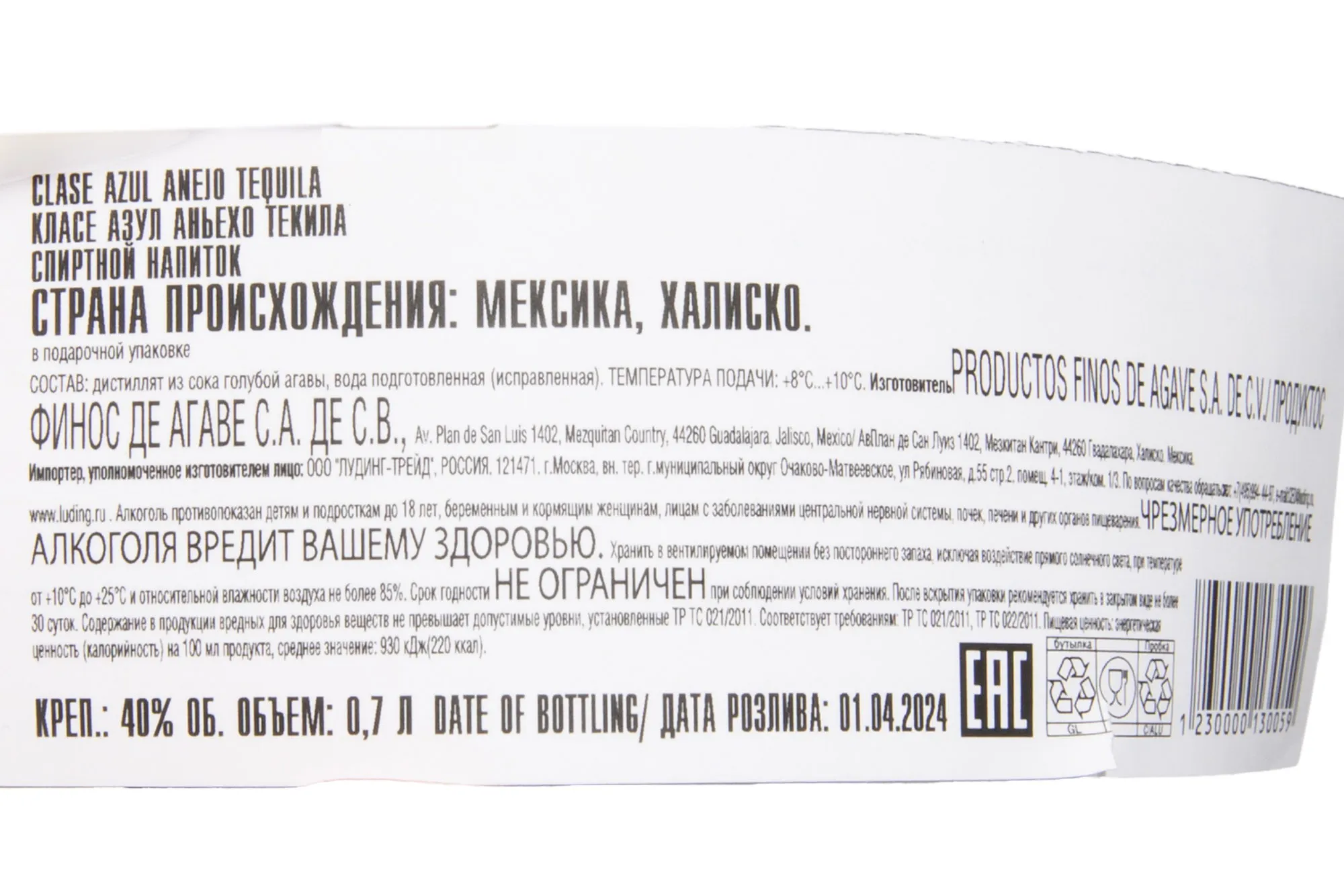 Производится исключительно из сока голубой агавы.