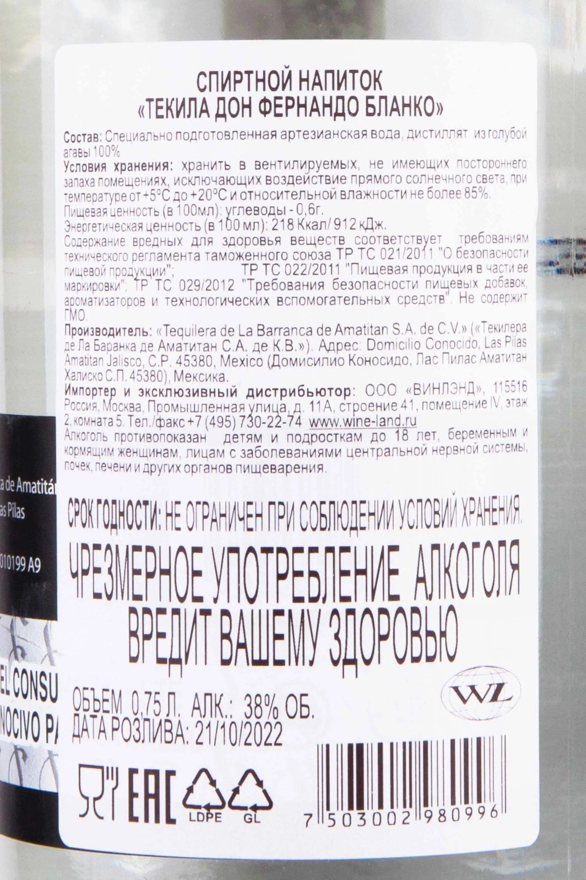 Don Fernando Blanco in gift box 0.75 л купить - Текила Дон Фернандо Бланко в подарочной упаковке цена в магазине