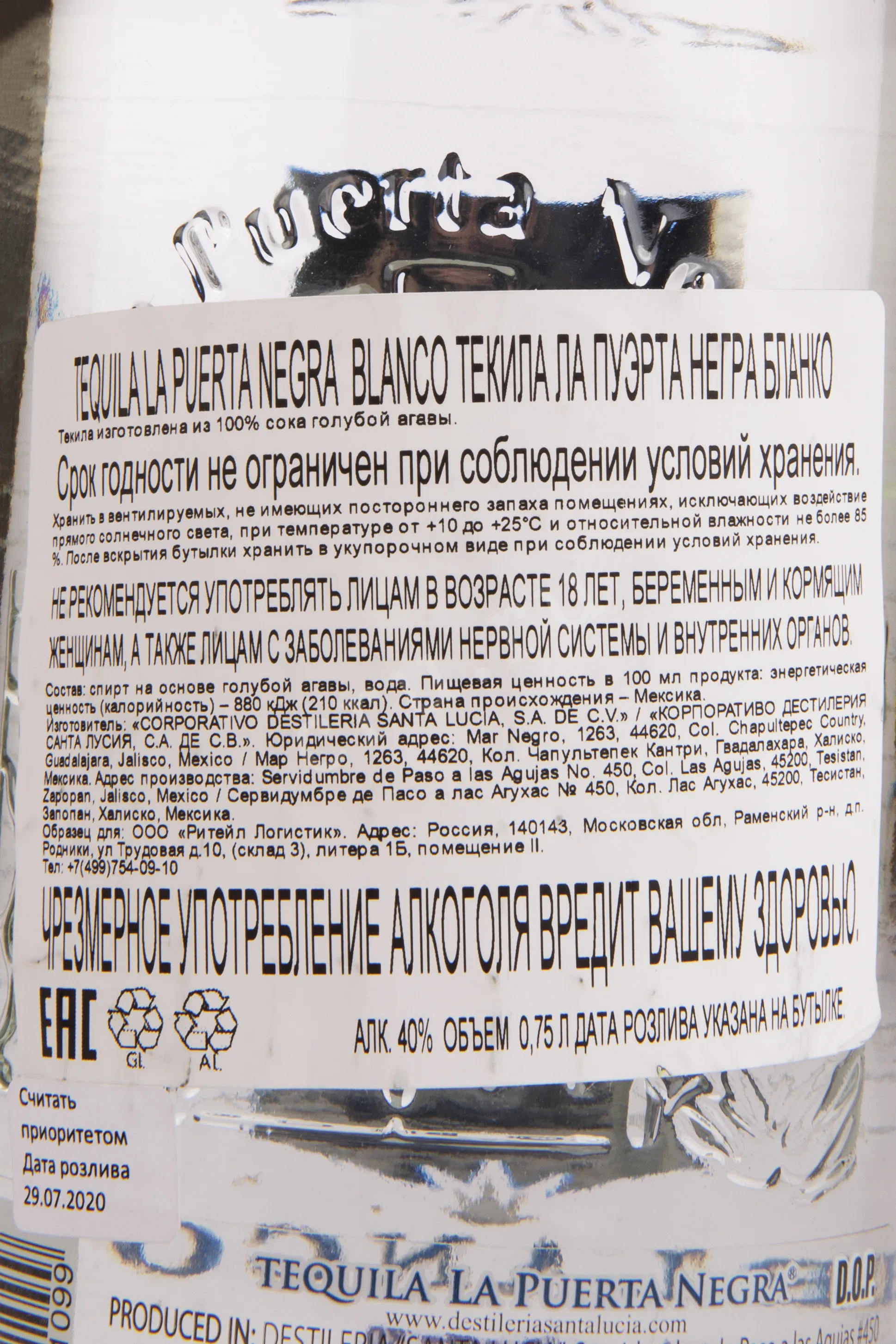 Текила La Puerta Negra Blanco 0.75 l – это оригинальный мексиканский алкоголь и самый молодой представитель коллекции бренда. 40-процентный напиток изготавливается путем ферментации агавового сока и последующей двойной перегонки. Белая текила не выдерживается в дубе и бутилируется сразу после дистилляции.