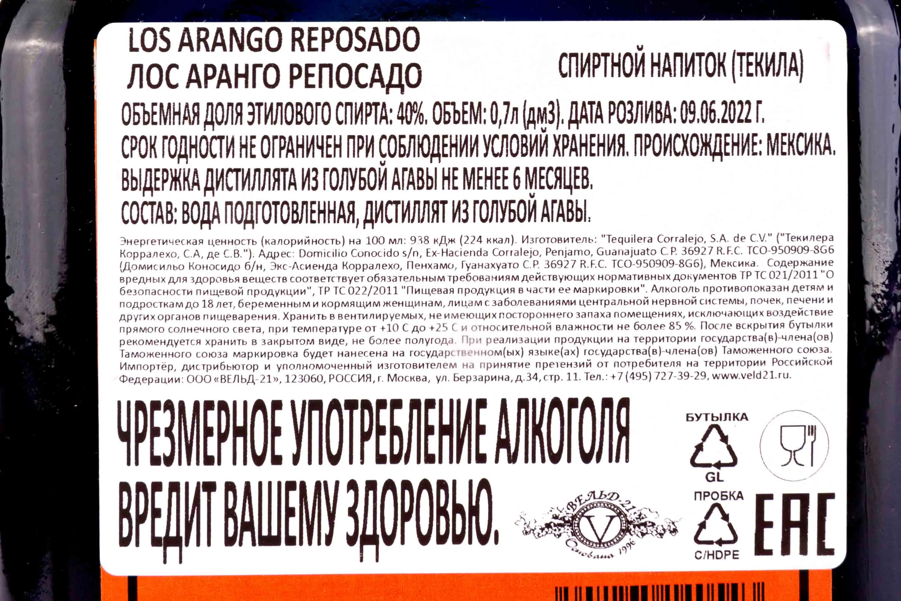 Los Arango Reposado 0.7 л купить - Текила Лос Аранго Репосадо цена в магазине