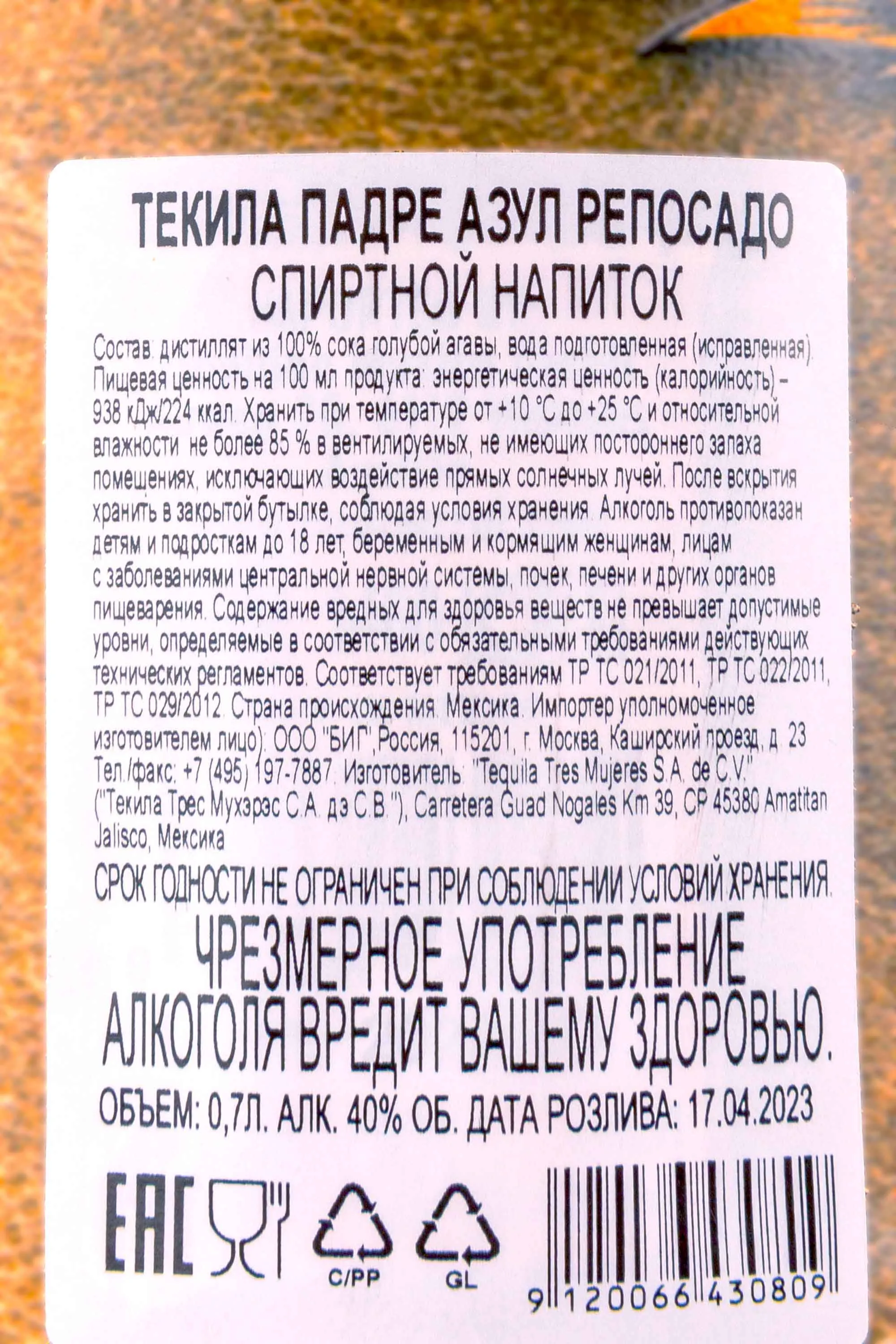 Производится исключительно из сока голубой агавы.