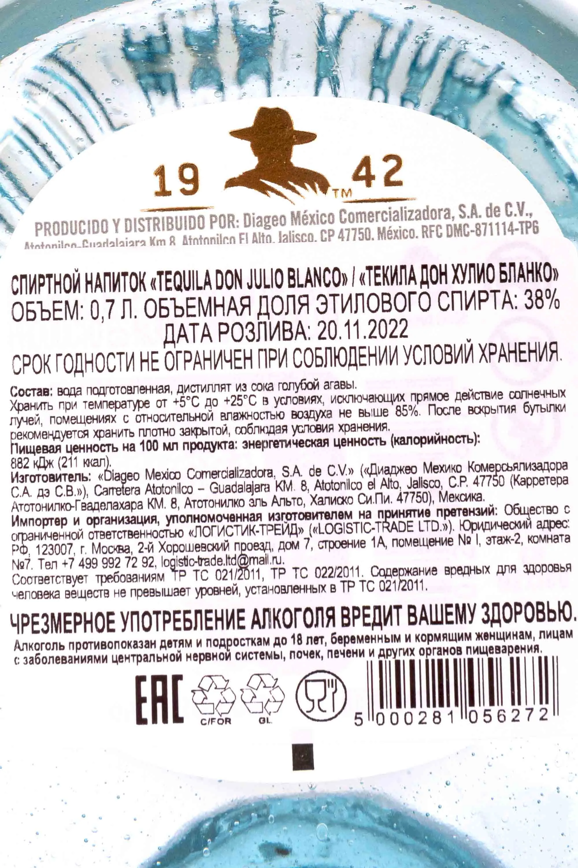 Производится исключительно из сока голубой агавы.