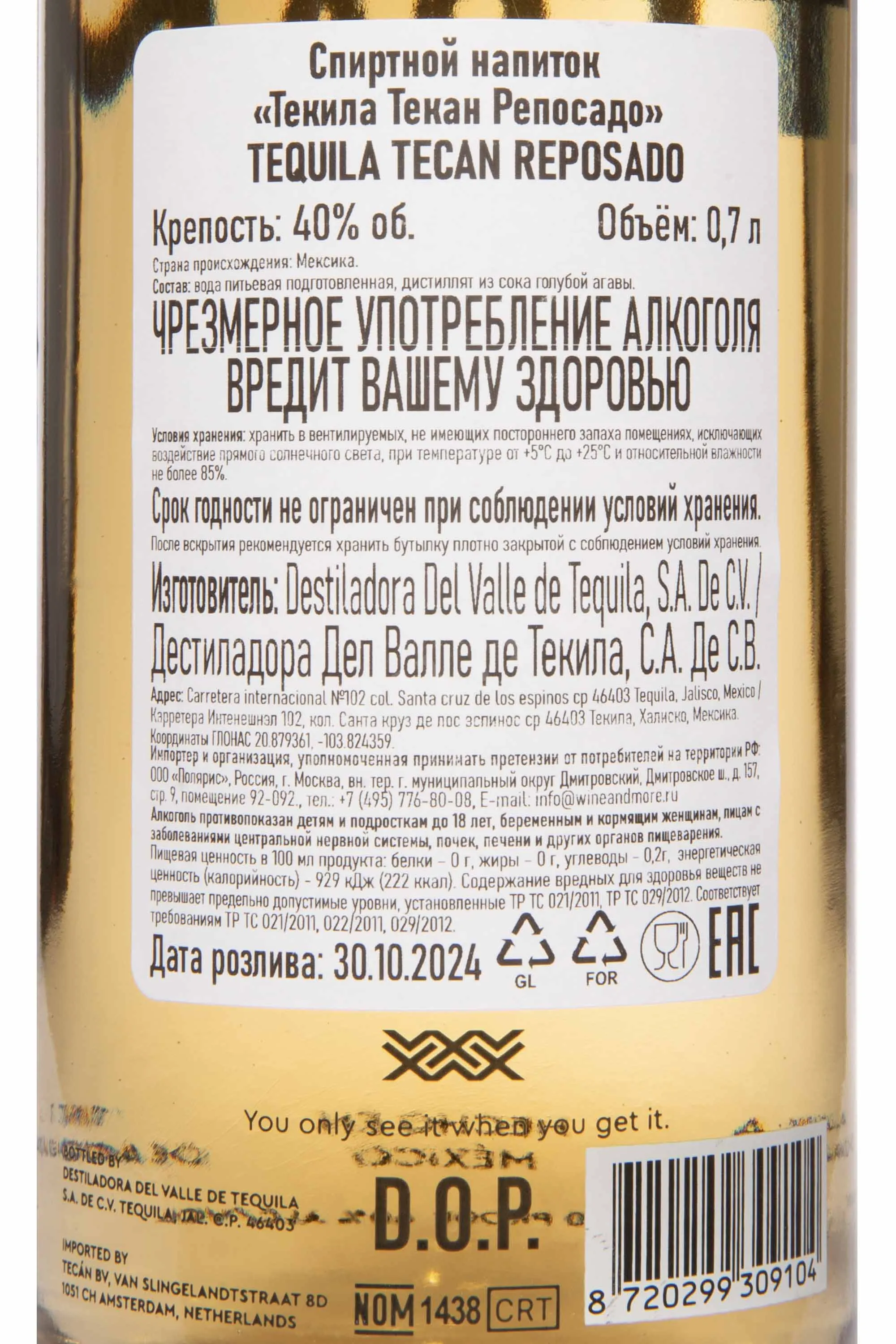 Tecan Reposado 0.7 л купить - Текила Текан Репосадо цена в магазине