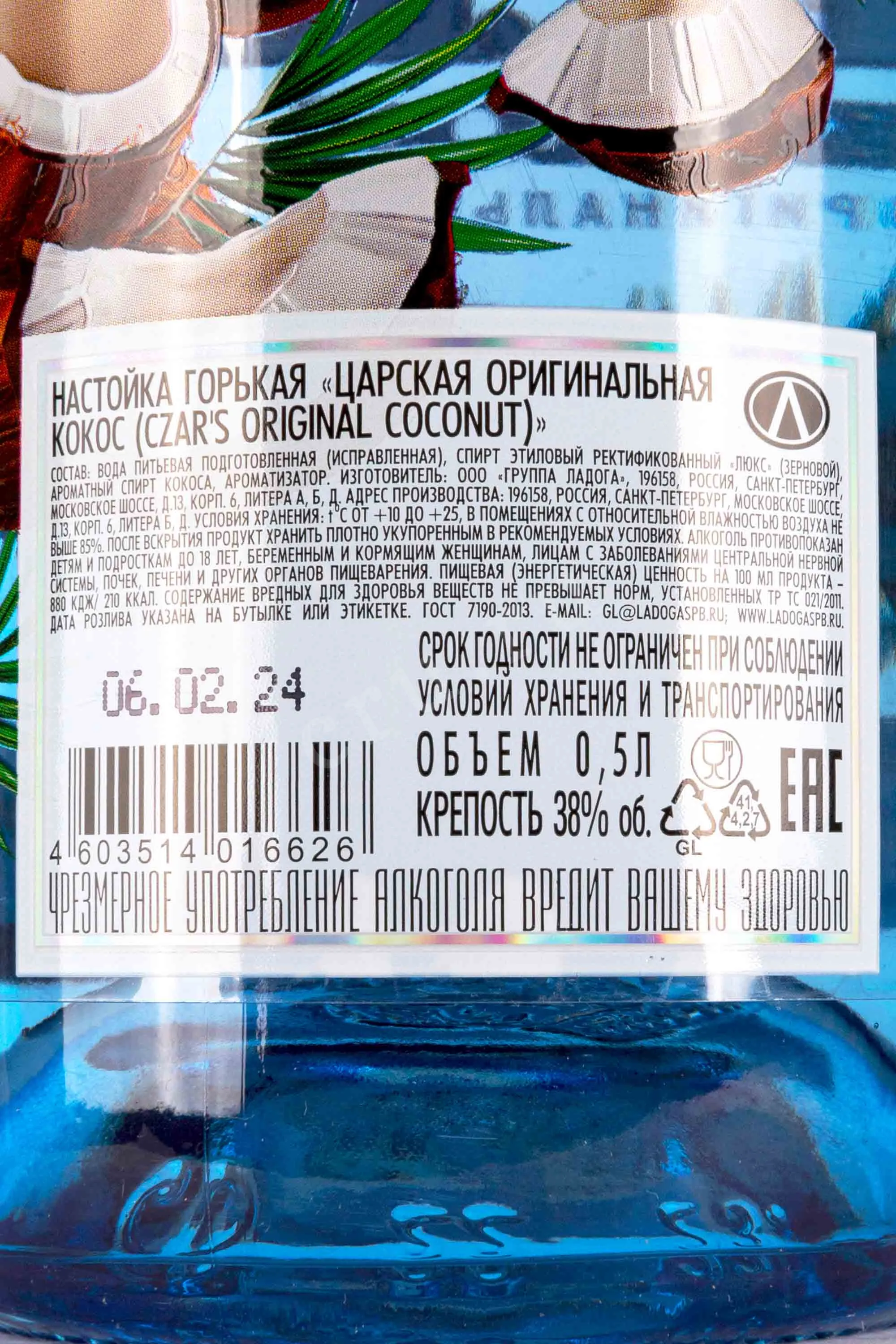 Царская Оригинальная Кокос 0.5 л купить настойку Czars Original Coconut цена в магазине КРЮ ПРОФИ