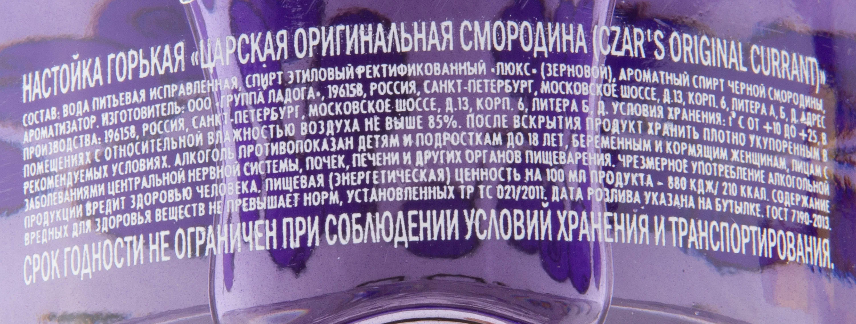 Водка Tsarskaia Original Currant 0.7 l – это российский алкоголь премиального сегмента, созданный санкт-петербургским заводом Ладога. 38-процентный напиток изготавливается из высококачественного спирта категории «Люкс», чистой воды из Ладожского озера и дистиллятов из свежемороженой черной стелящейся смородины, собранной в Республике Карелия.