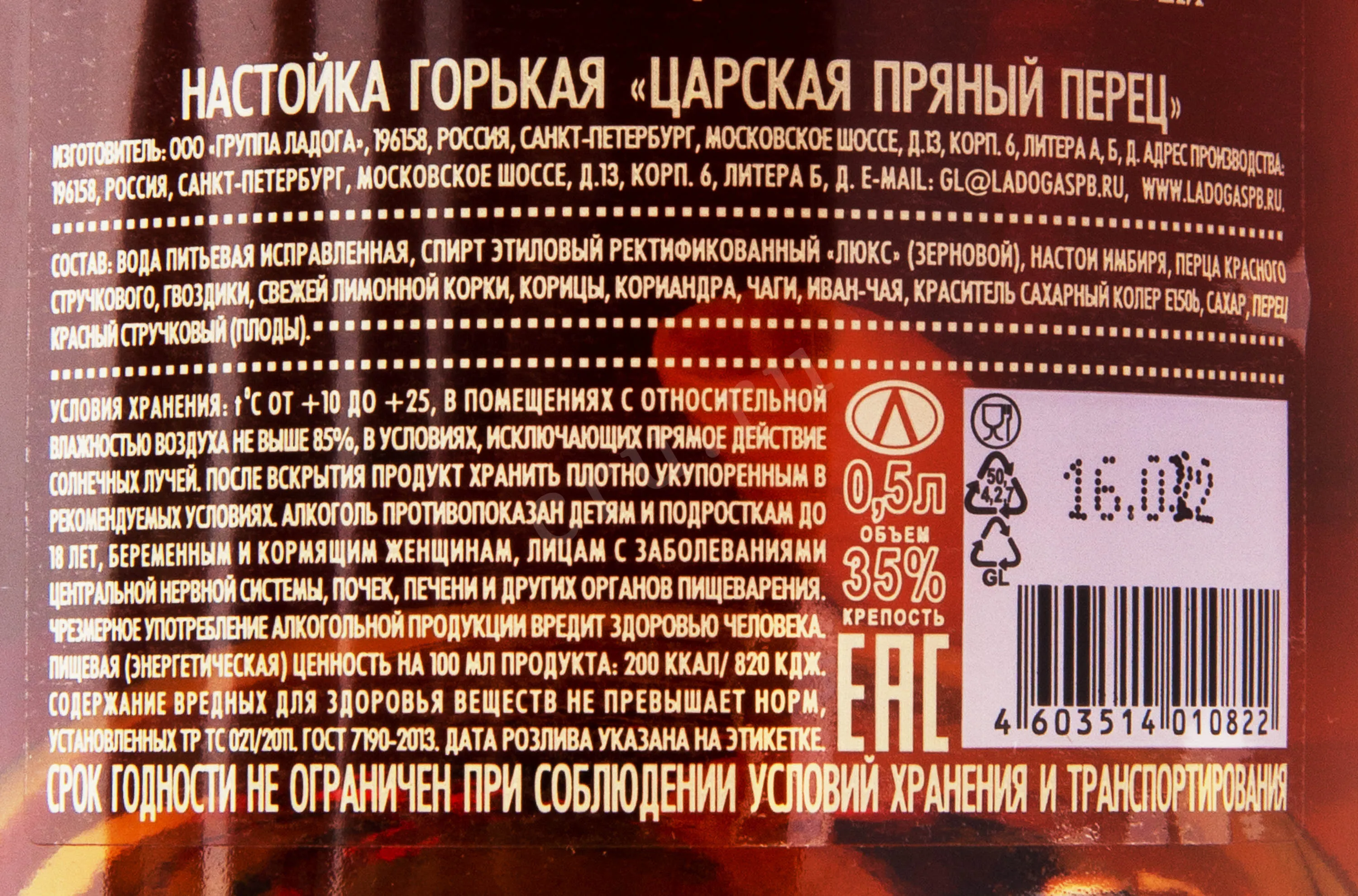 Царская Пряный Перец 0.5 л купить настойку Czars Spicy Pepper цена в магазине КРЮ ПРОФИ