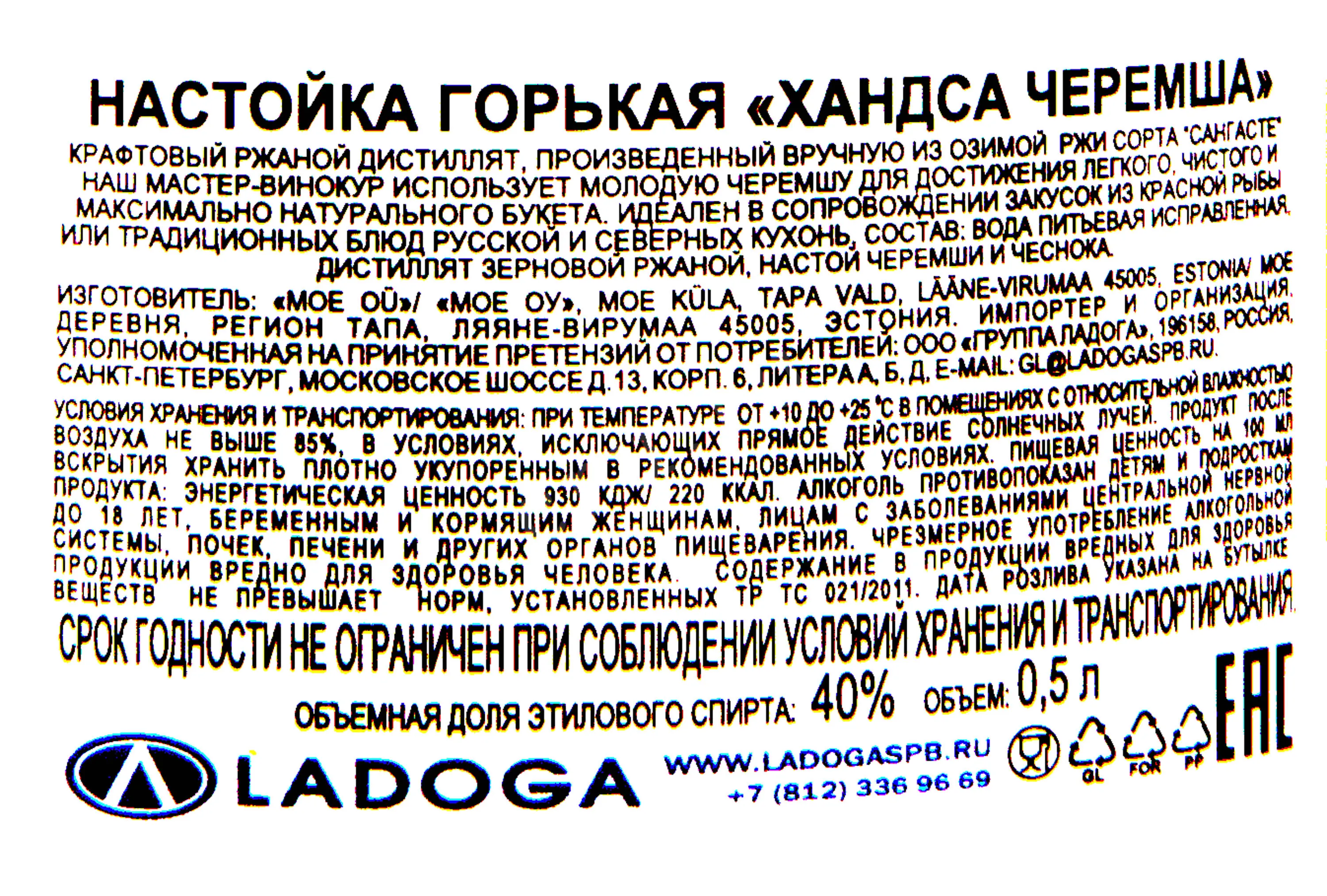 Хандса Черемша 0.5 л купить настойку Handsa Wild Garlic цена в магазине КРЮ ПРОФИ
