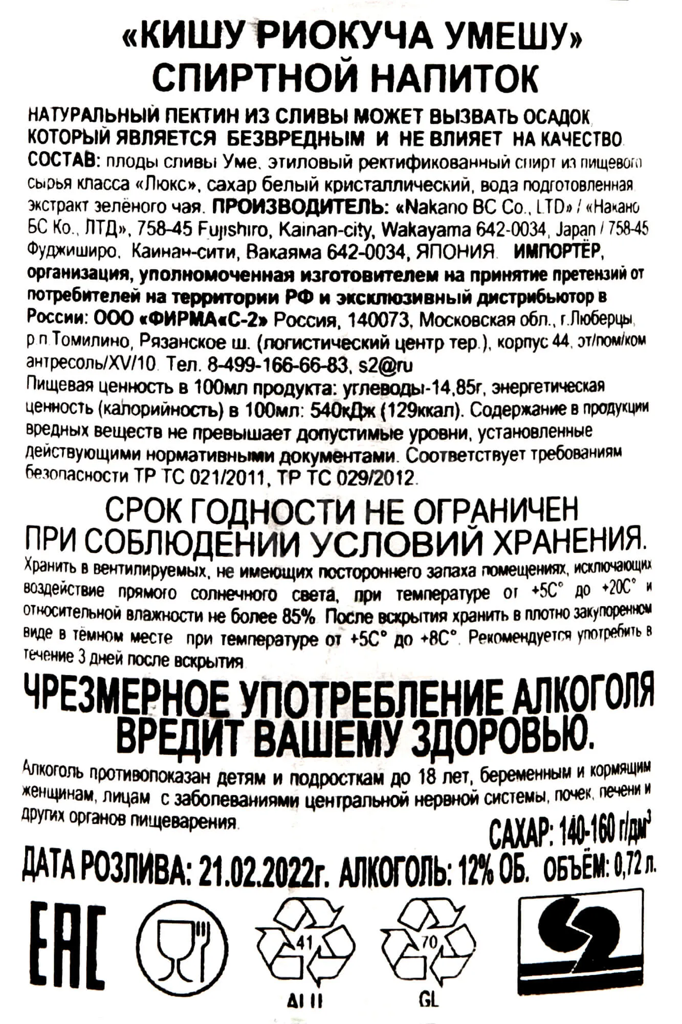 Кишу Риокуча Умешу 0.72 л купить настойку Kishu Riokucha Umeshu цена в магазине КРЮ ПРОФИ