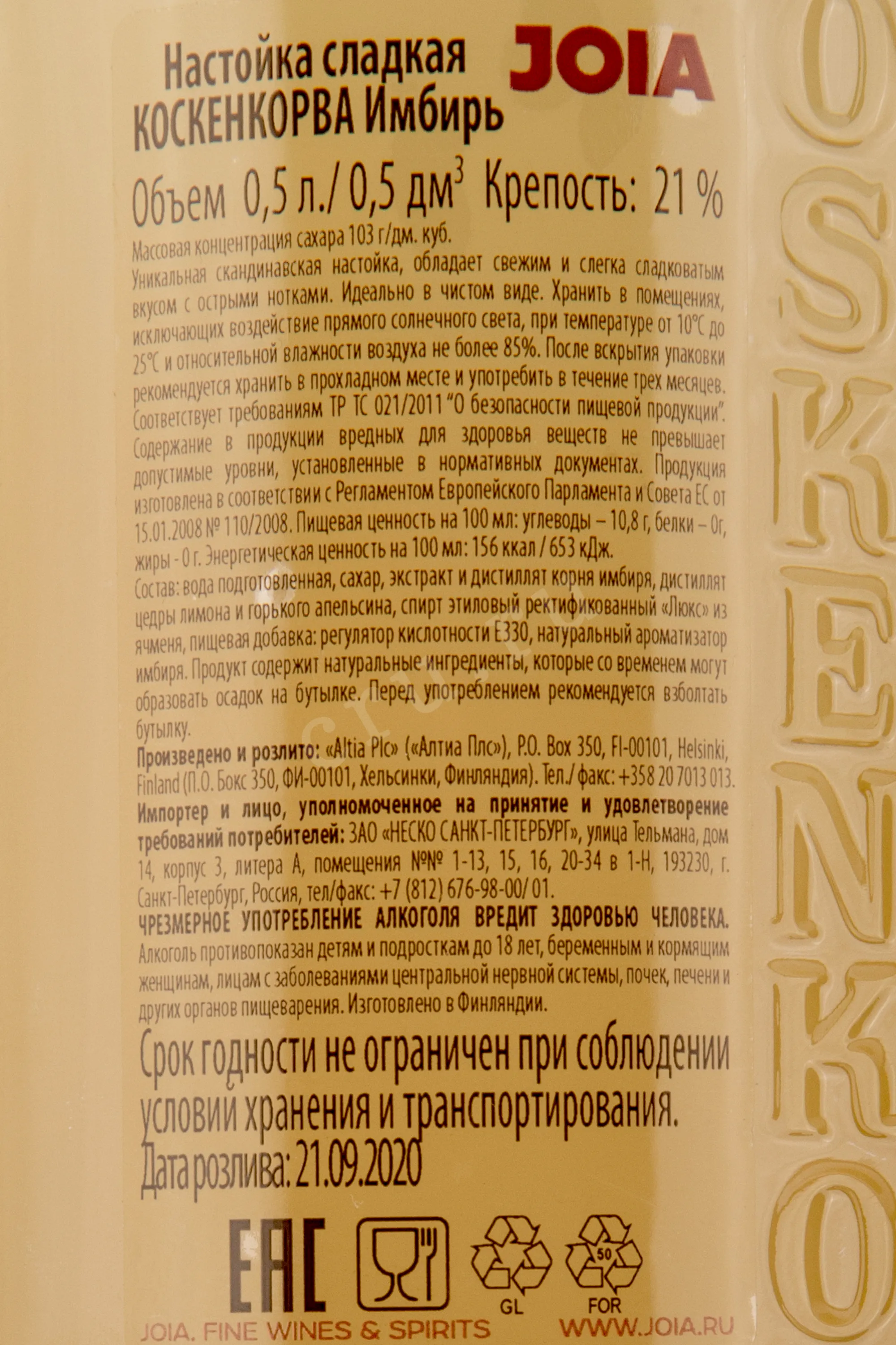 Коскенкорва Имбирь 0.5 л купить настойку Koskenkorva Ginger цена в магазине КРЮ ПРОФИ