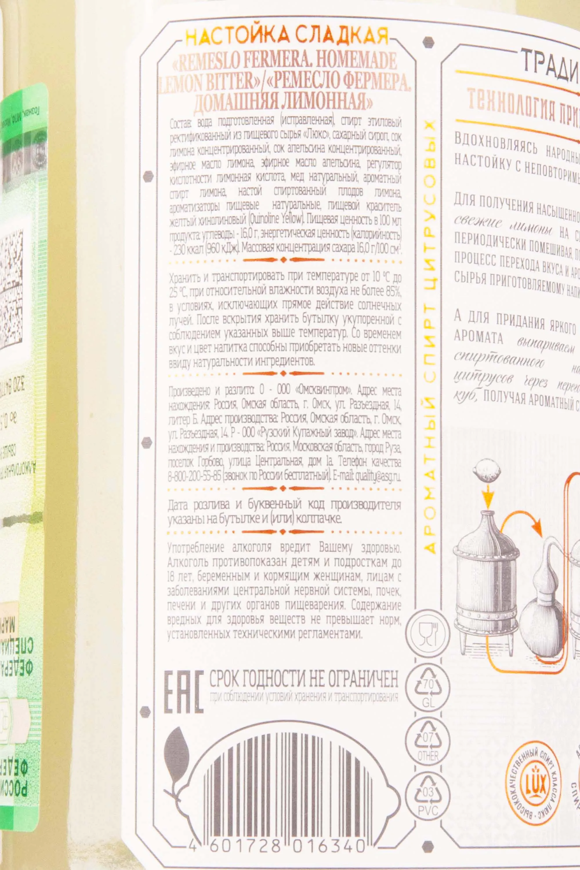 Remeslo Homemade Lemon Bitter 0.7 л купить — настойка Ремесло Фермера Домашняя Лимонная цена в магазине