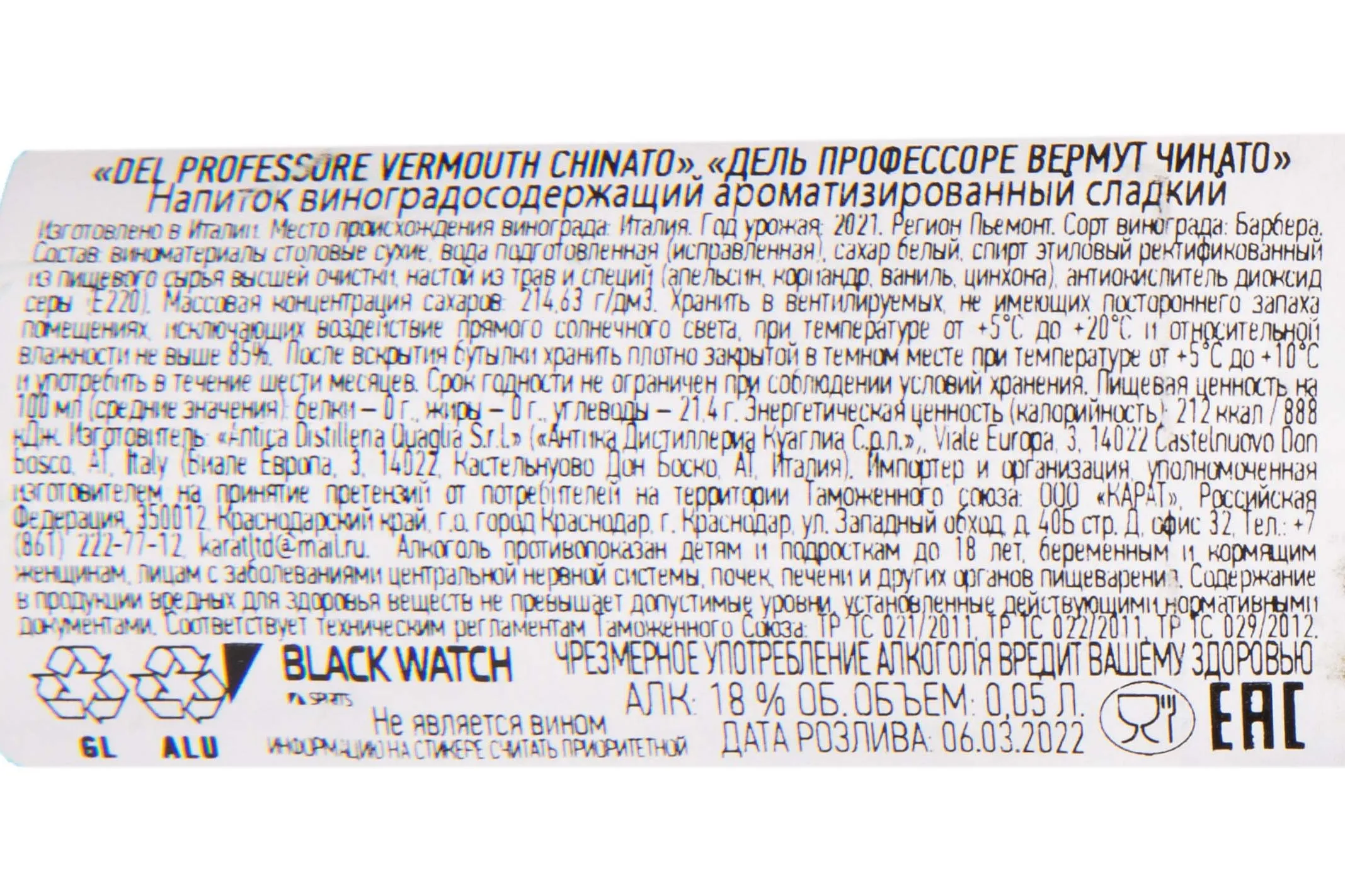 Del Professore Vermouth Chinato 0.05 л купить - Вермут Дель Профессоре Вермут Чинато цена в магазине г. Москва, ул. Профсоюзная, д. 16/10 10:00-22:00 Ежедневно +7 (495) 920-20-02 info@cru.ru