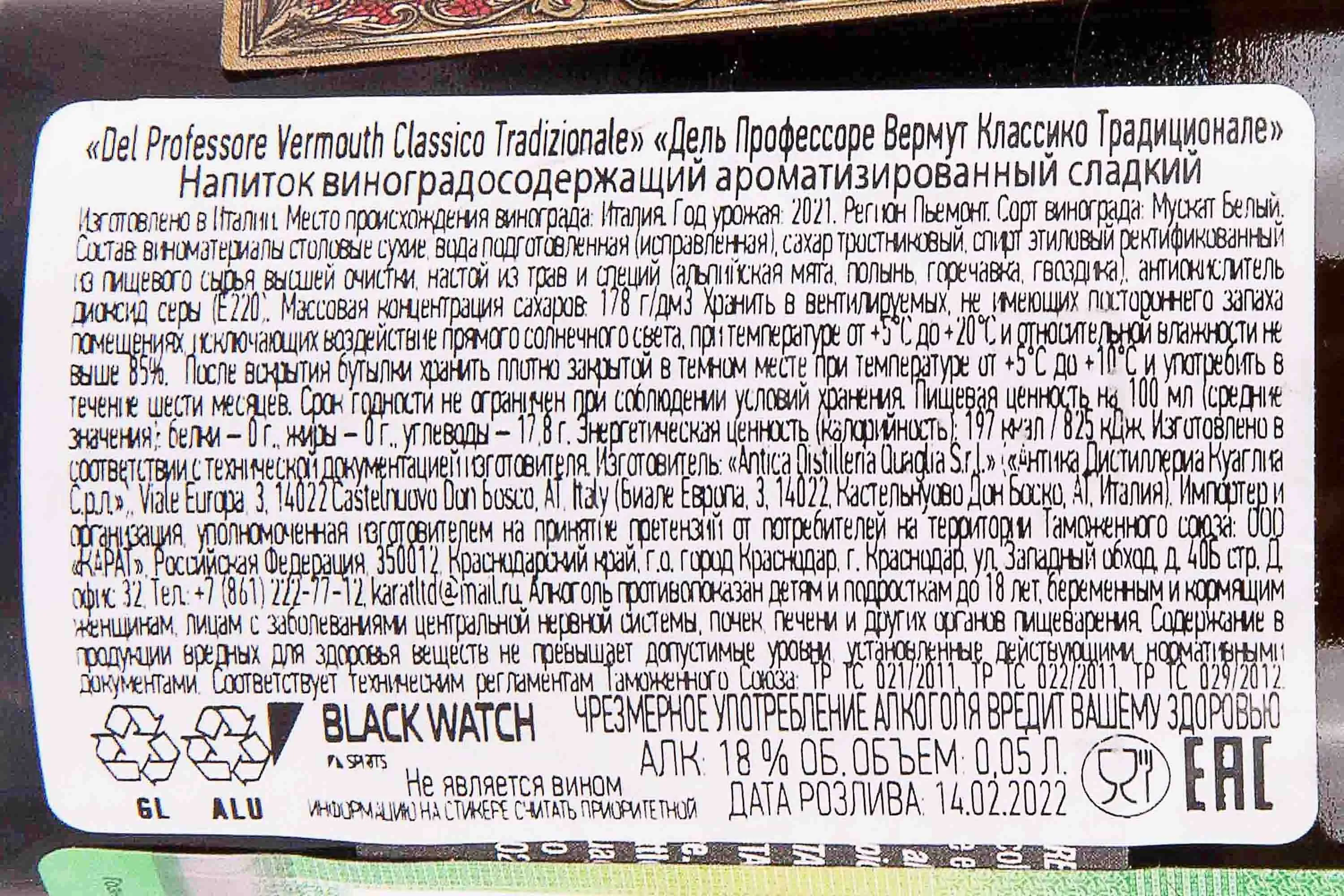 Del Professore Vermouth Classico Tradizionale 0.05 л купить - Вермут Дель Профессоре Вермут Классико Традиционале цена в магазине г. Москва, ул. Профсоюзная, д. 16/10 10:00-22:00 Ежедневно +7 (495) 920-20-02 info@cru.ru