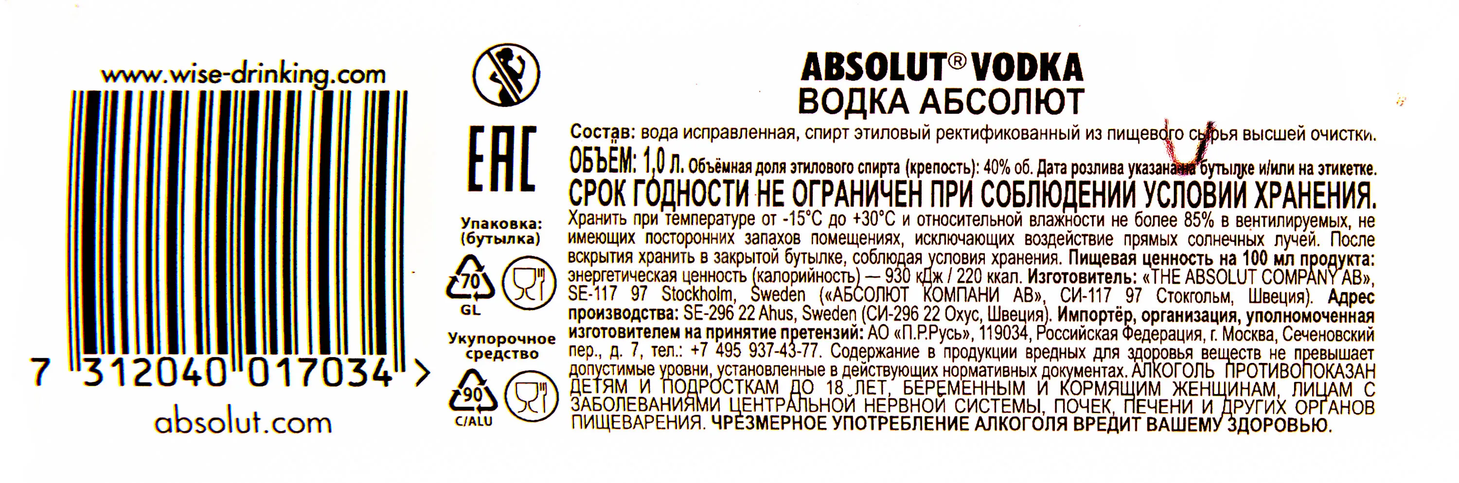 Водка Absolut 1 л производится в Швеции, в городе Охус. Основные компоненты напитка — отборная озимая пшеница и чистейшая артезианская вода. Водку подвергают многоступенчатой непрерывной дистилляции, что обеспечивает мягкость и отсутствие посторонних примесей. Фирменная литровая бутылка отличается практичностью и удобством при сервировке. Ее строгий классический дизайн, напоминающий старинные аптекарские емкости, стал визитной карточкой бренда и легко узнается по всему миру.