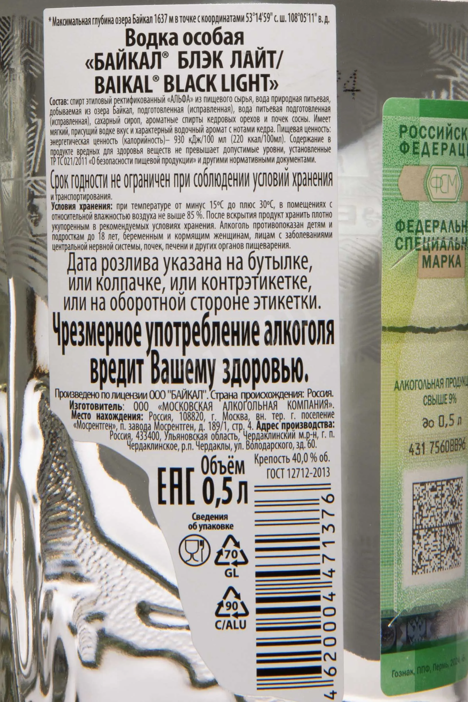 Байкал Блэк Лайт 0.5 л купить Водка Baikal Black Light цена в магазине КРЮ ПРОФИ