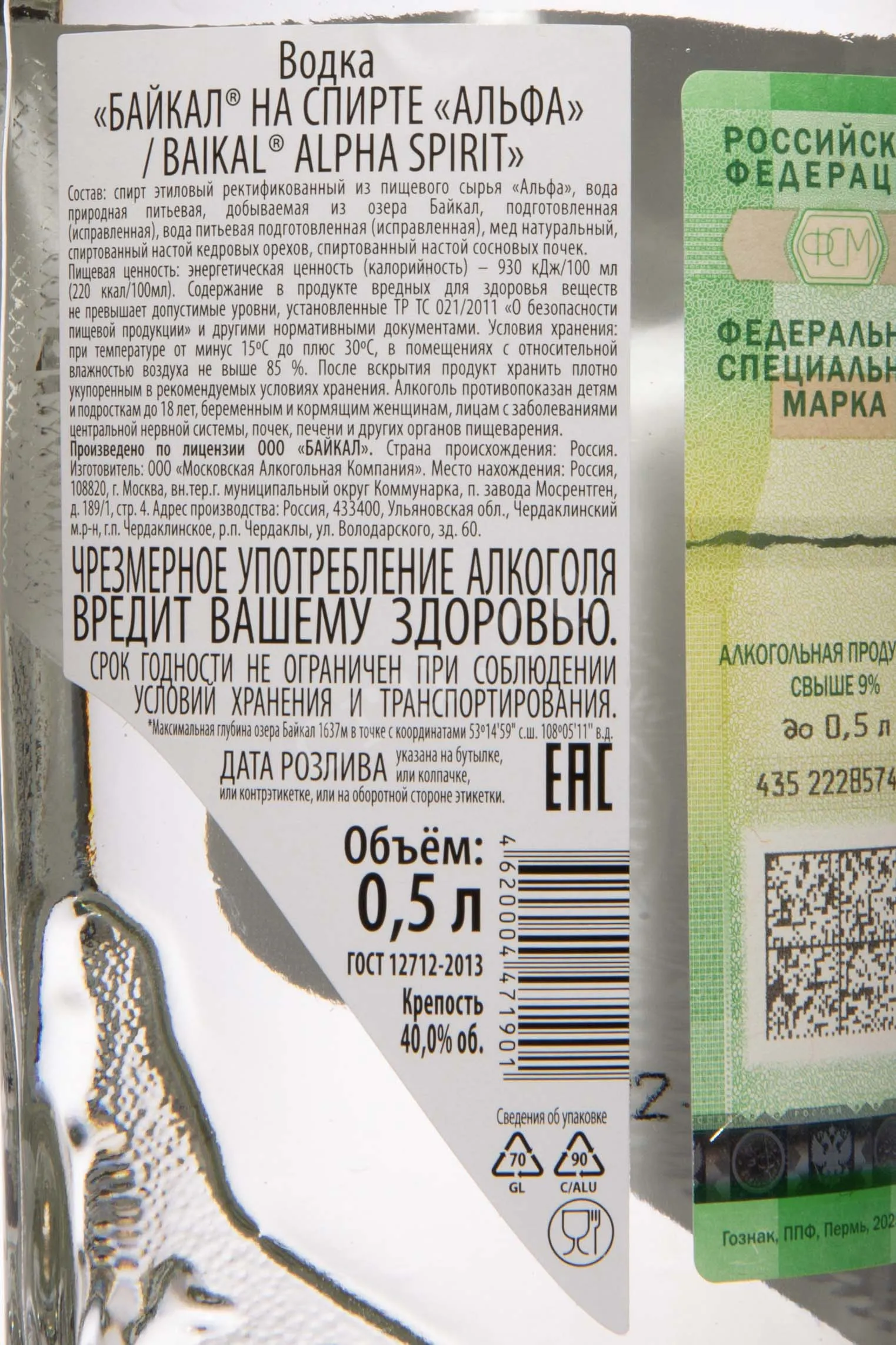 Baikal Premium Alpha Spirit 0.5